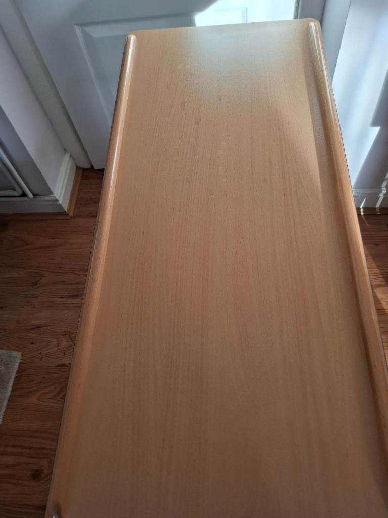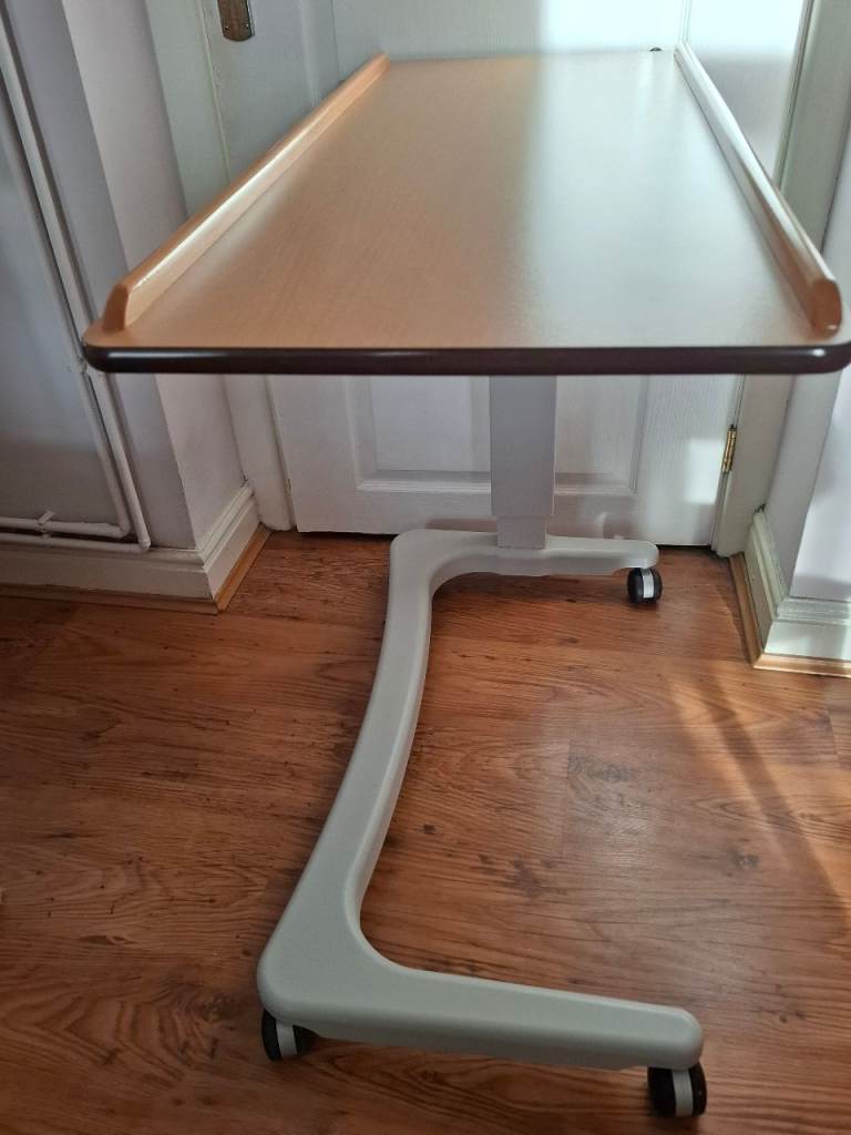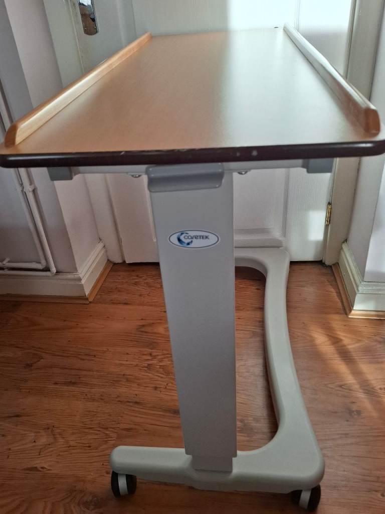 Moves smoothly on Castor wheels and it has an adjustable height, 740mm to 1050mm