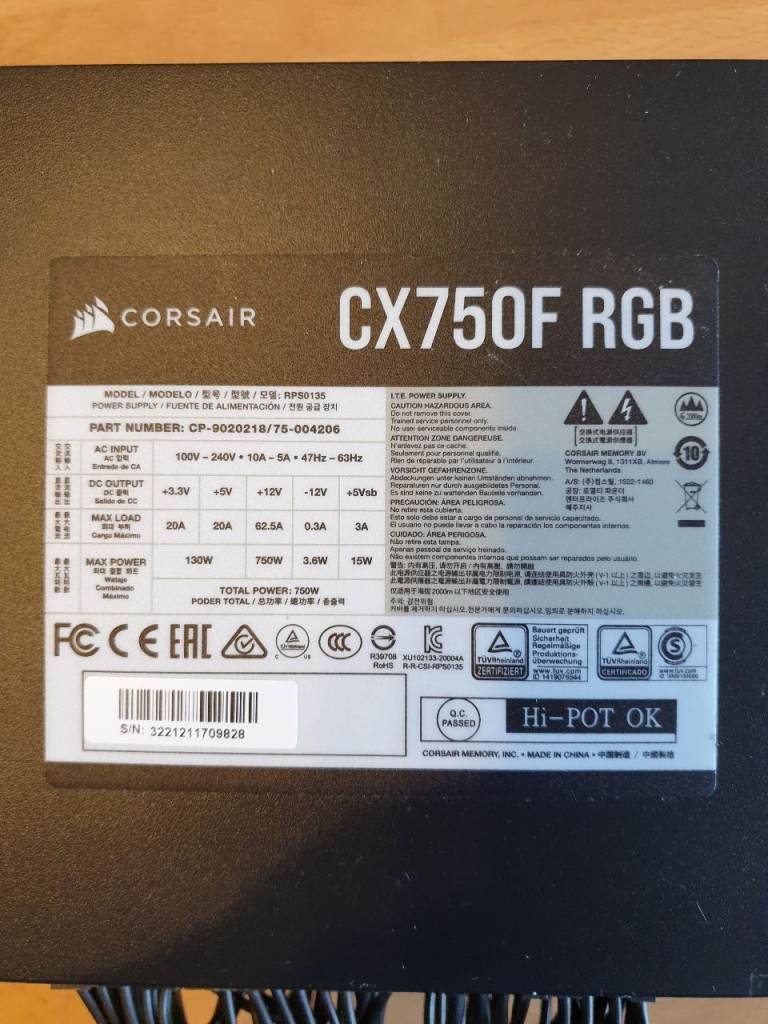 750W 80+ Bronze Certified Corsair CX750F RGB Desktop Computer Power Supply
