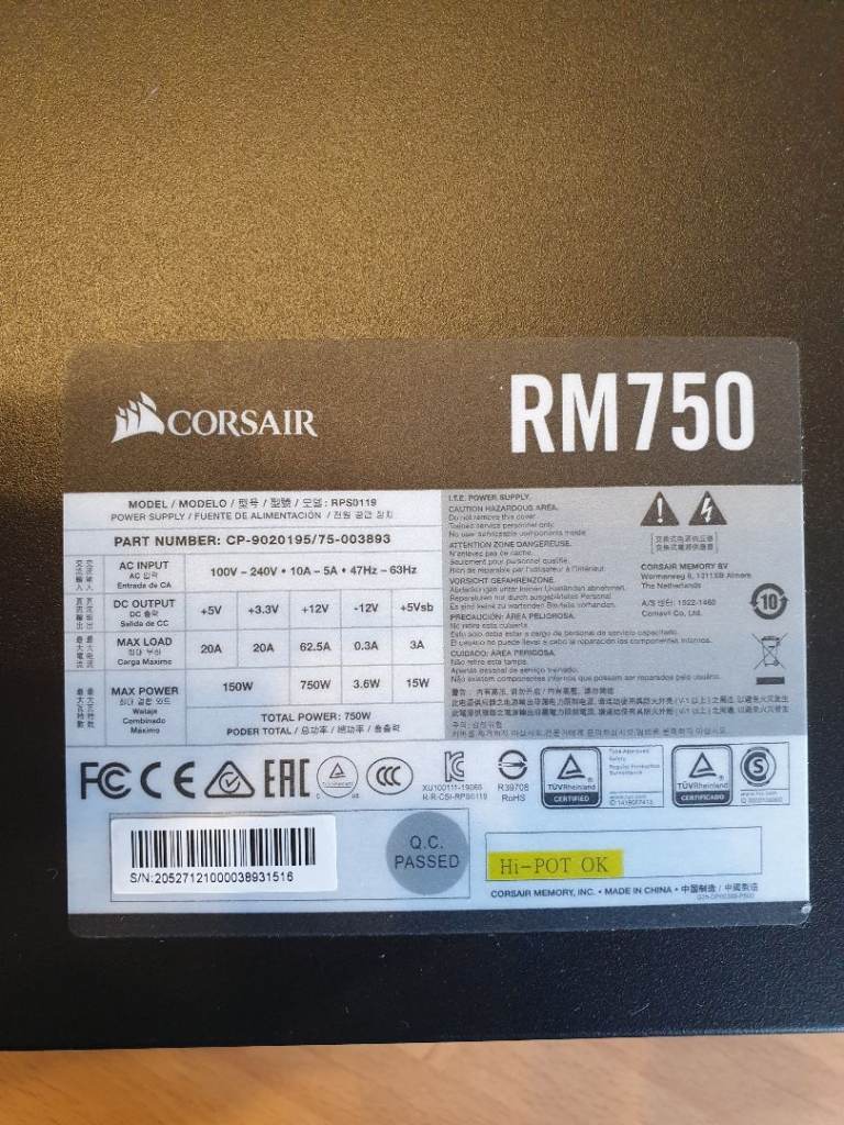 750W 80+ Gold Certified Corsair RM750 Desktop Computer Power Supply
