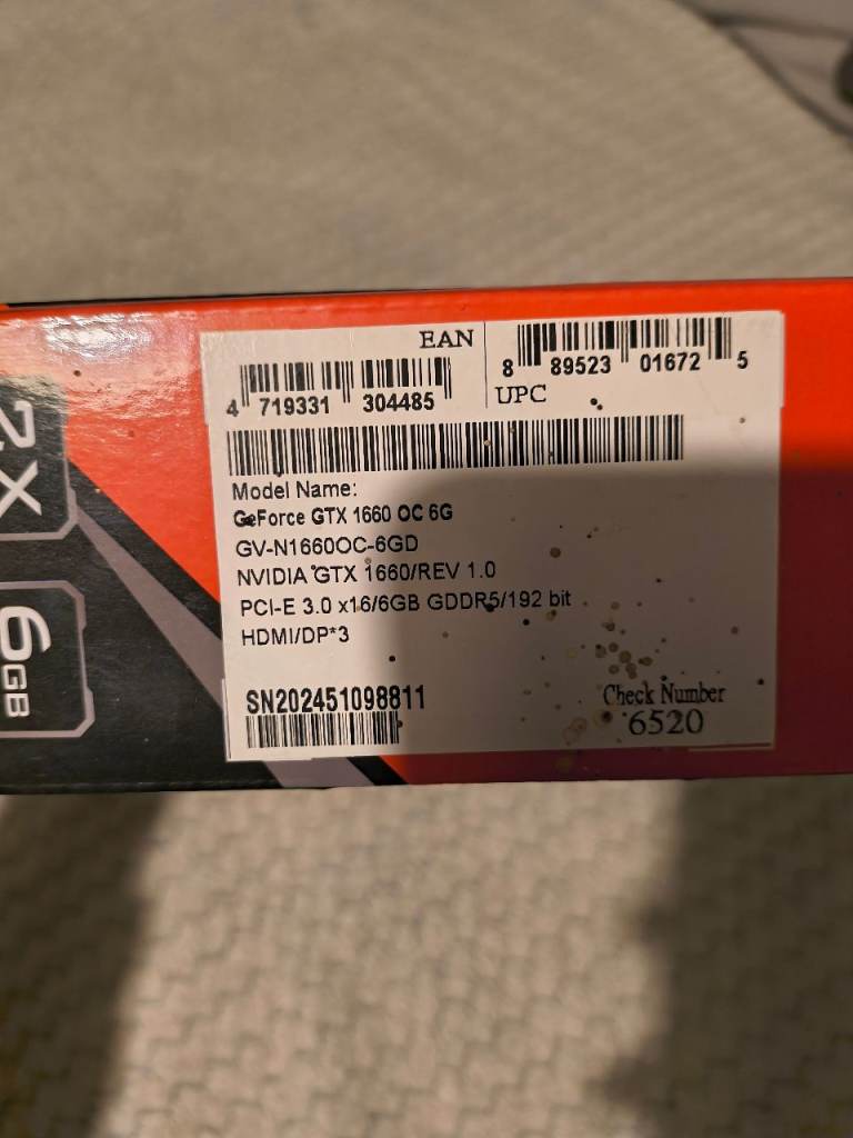 Gigabyte GeForce GTX OC 1660 graphics card 6gb