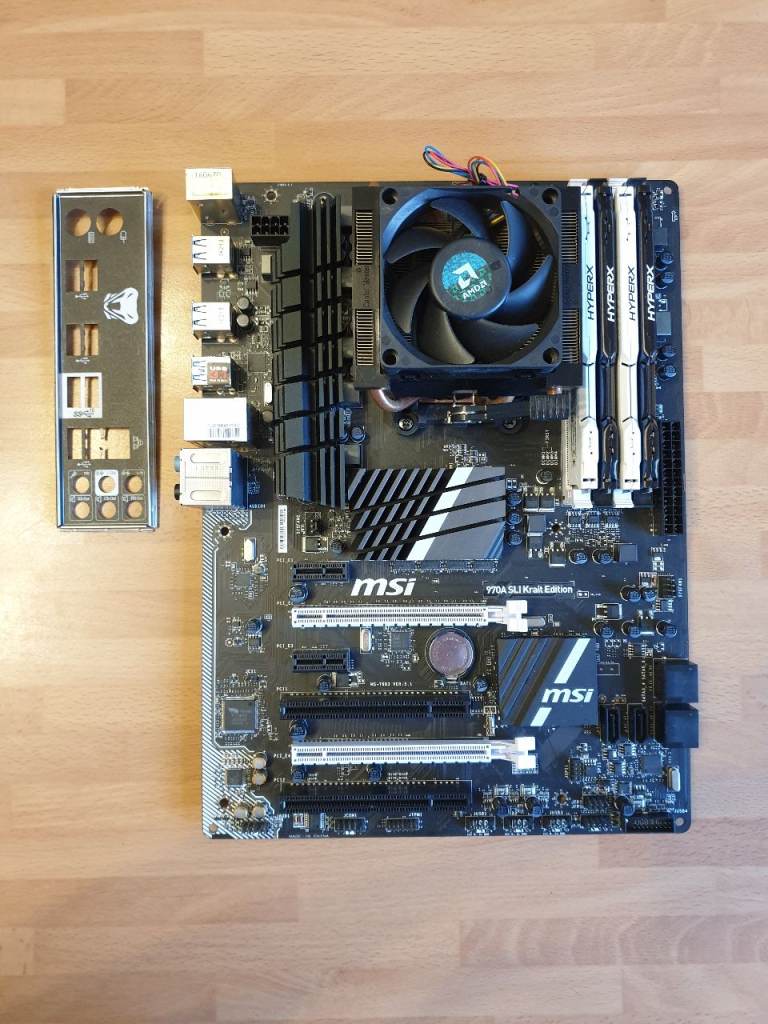 MSI FX motherboard with an AMD 8-Core FX-8350 processor, copper heatpipe cooler, and 24GB HyperX 1866MHz DDR3 ram