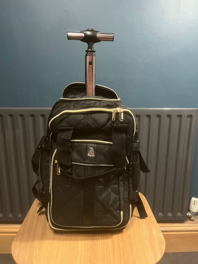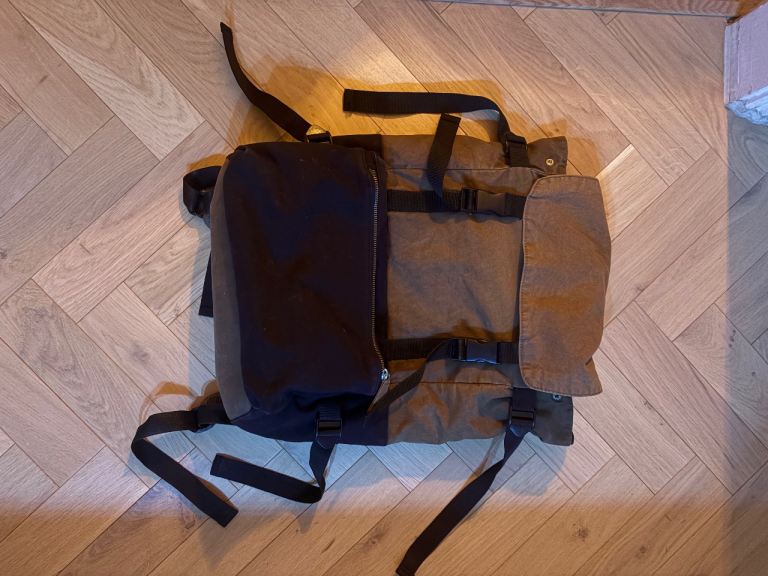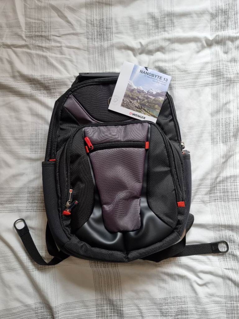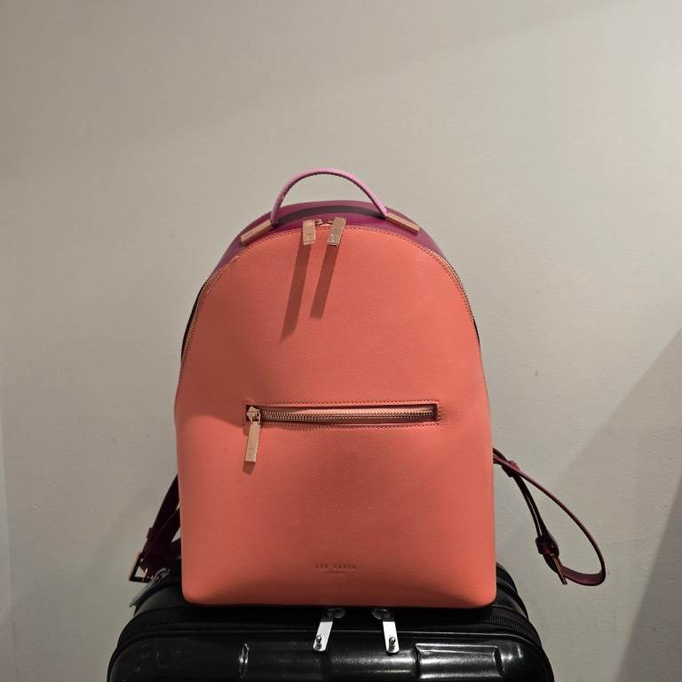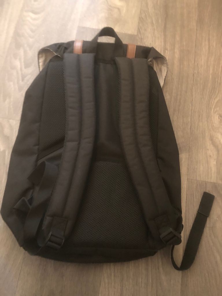 A small backpack made of faux leather with an exterior pocket with a magnetic closure. The pocket features reflective tape for added safety on the road, and one zippered pocket on the back. Inside, there's one zippered pocket and one slip pocket. Waterproof lining inside. The backpack can be carried by hand or on your back and is large enough to hold a book or even a small bottle of water. It's truly spacious and comfortable to use. .I highly recommend purchasing it.