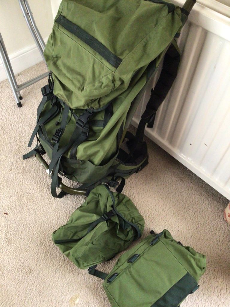 Norrano metal framed backpack with 2 small bags good condition
