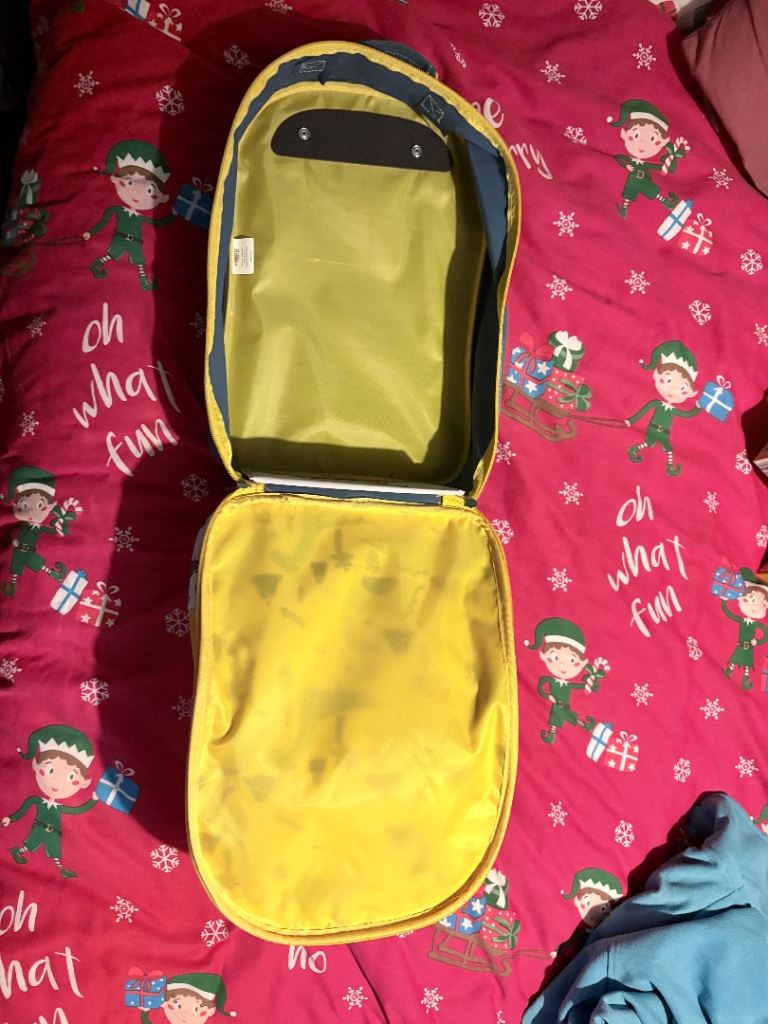 Colourful dinosaur-themed backpack by Princess Traveller.