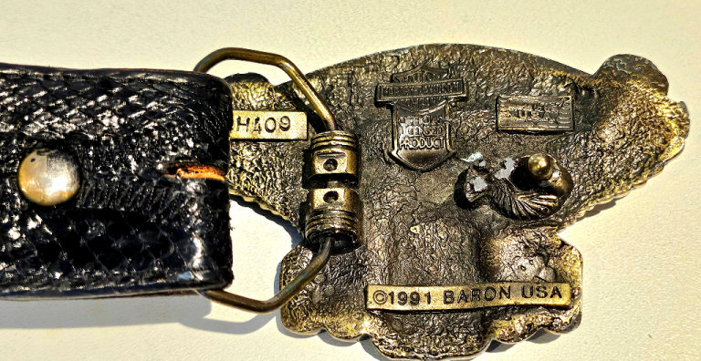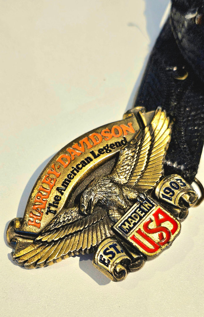 Vintage early 1990s Harley Davidson belt Buckle on a 34 Texan leather belt (used)