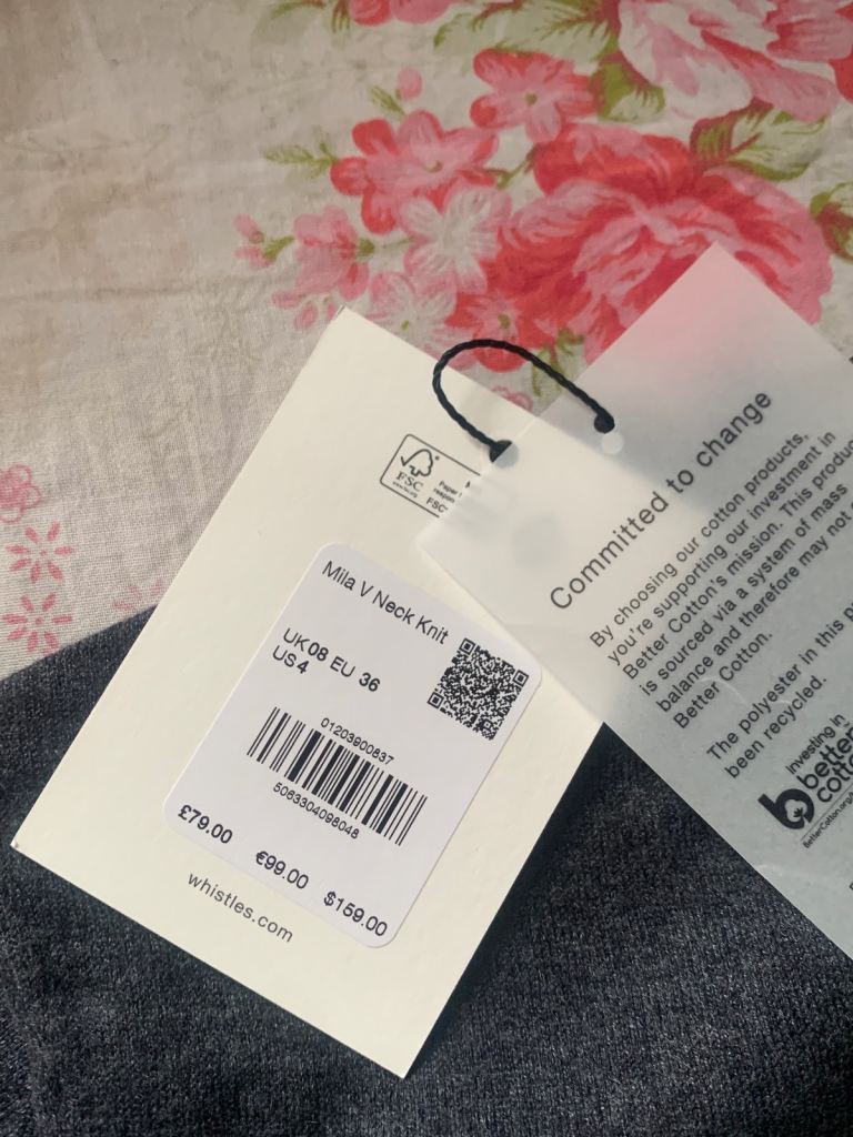 WHISTLES- Brand New V-neck Cardigan (Ladies- 36)