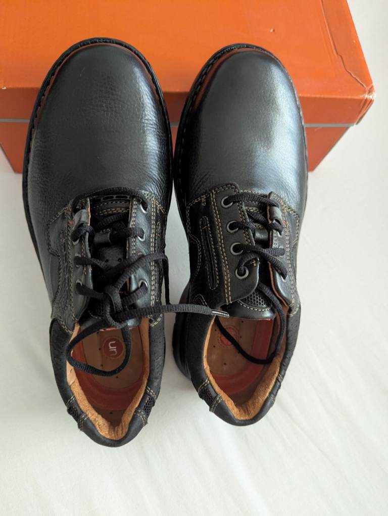 Brand new Clarks black leather shoes size 8h. Comfortable and Quality shoes in its original box. Now reduced price £30