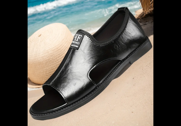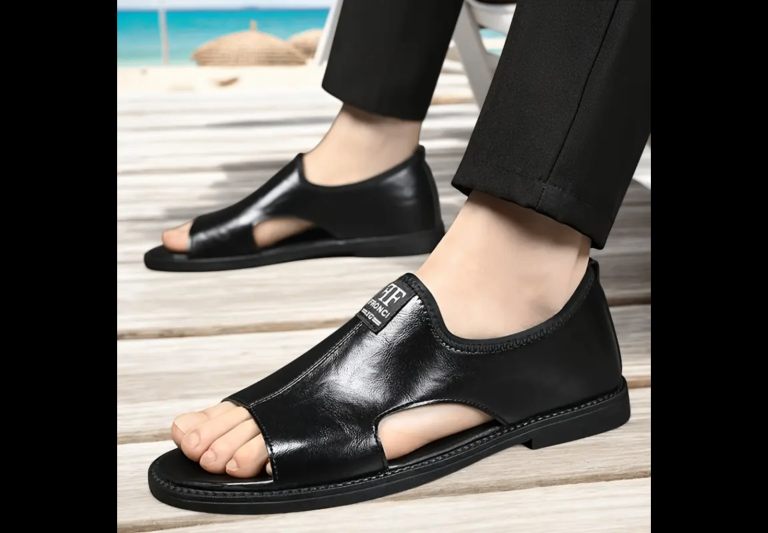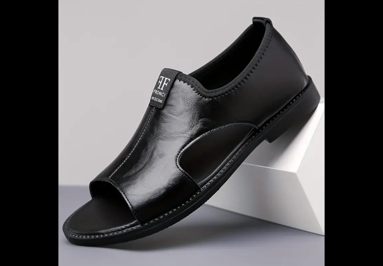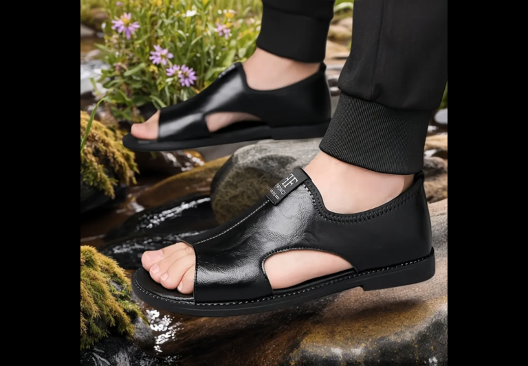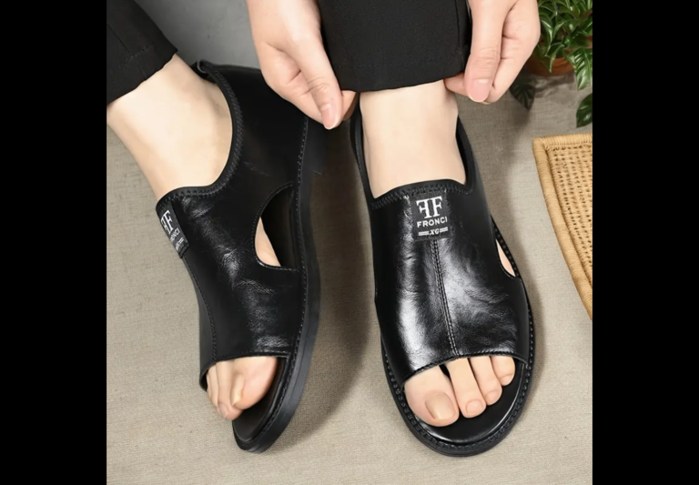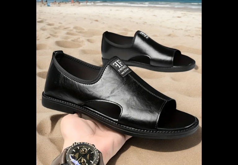 Men’s black leather slip-on sandals loafers shoes size UK10/11