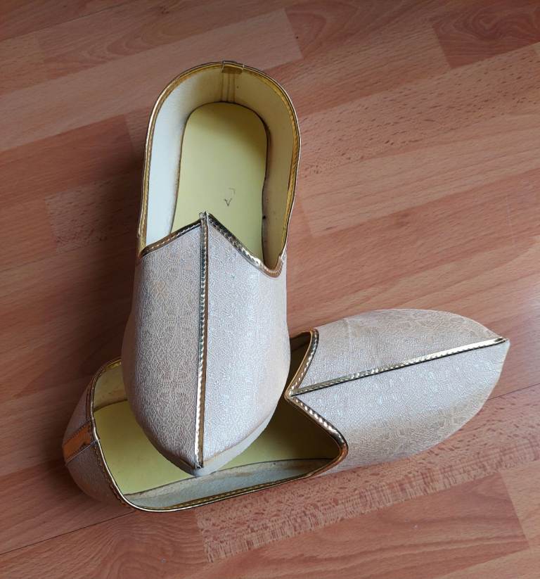 These Men's Mojari shoes in gold are a stylish addition to any casual outfit.