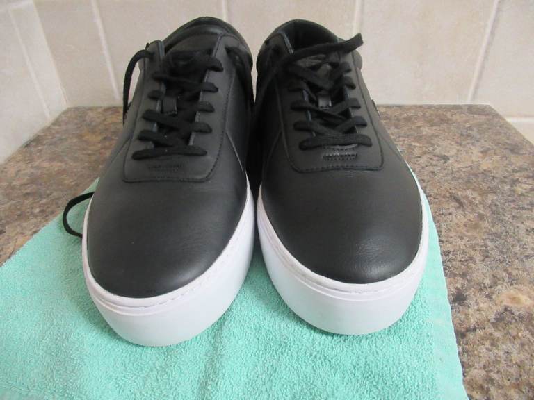 Men’s black leather slip-on loafers size UK10.