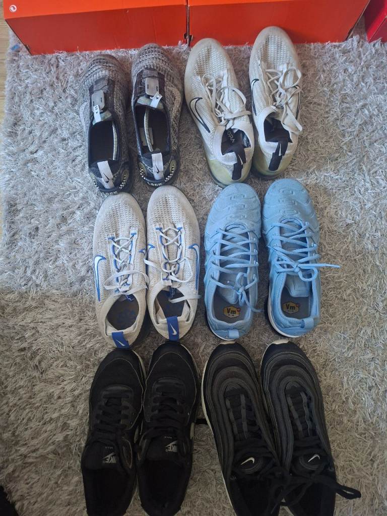 A bundle of Nike trainers, various models including Vapormax and Air Max 97s.