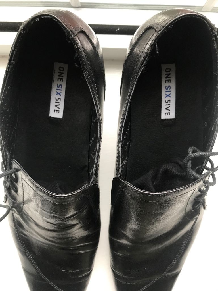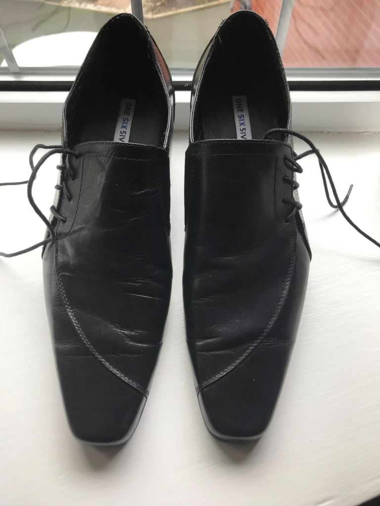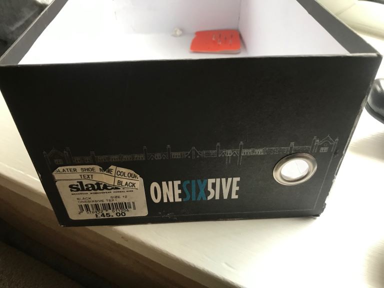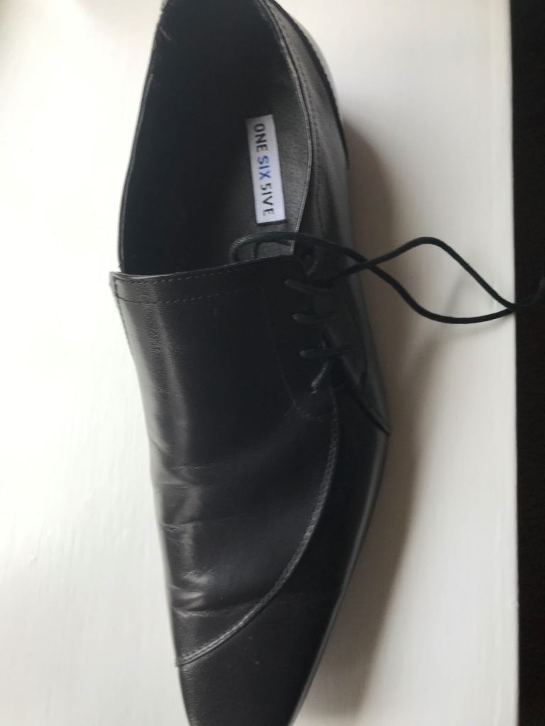 Stylish all leather black size 12 ‘OneSix5ive’ men’s shoes in excellent condition, Hardly worn and comes complete with heel protectors, protective storage bags and original box in which they have been stored in my wardrobe. Great pair of well cared for quality shoes, originally £45 from Slaters, now £20.