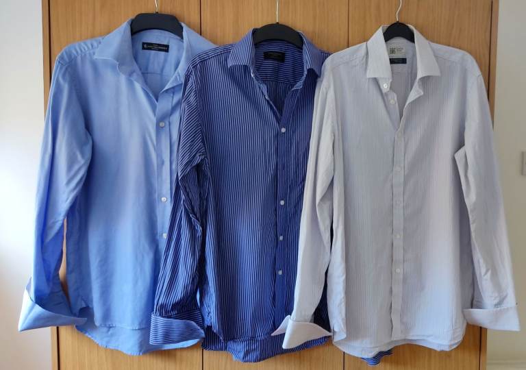 Two Savoy Taylors Guild cotton shirts and one Savile Row stripe cotton shirt(41cm)