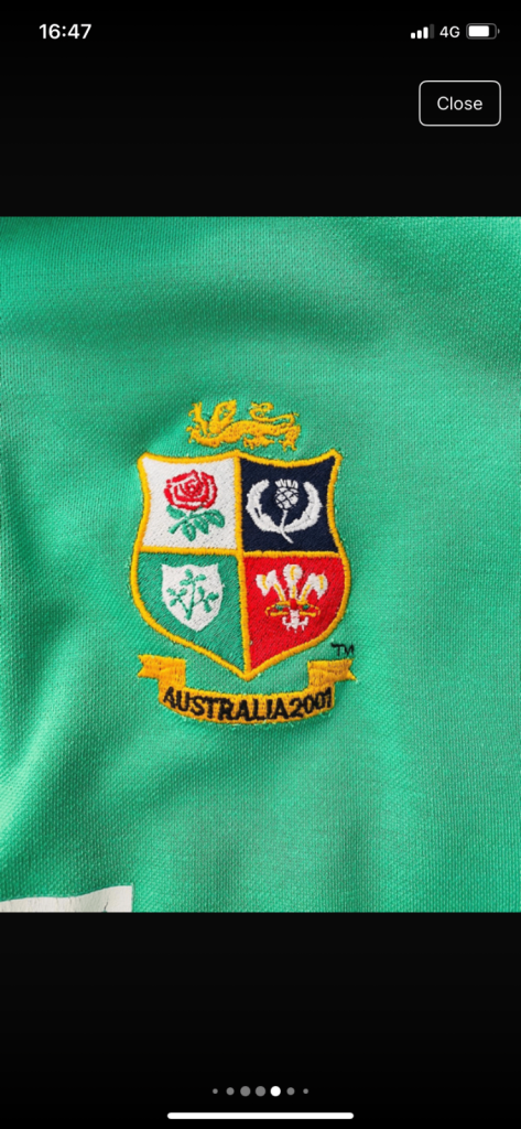 British Lions Tour shirt to Australia 2001. Green authentic rugby shirt in excellent condition. Size medium but would fit a small Large