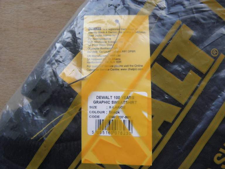DEWALT 100 YEARS GRAPHIC SWEATSHIRT XL BLACK REGULAR FIT GUARANTEED TOUGH