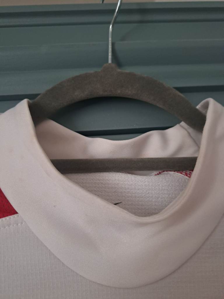 I purchased this top in 2003 when England won the rugby world cup. Its in a size large and is the tight fitting shirt. The top has been in storage and is in great condition apart from some light marks on the collar area.