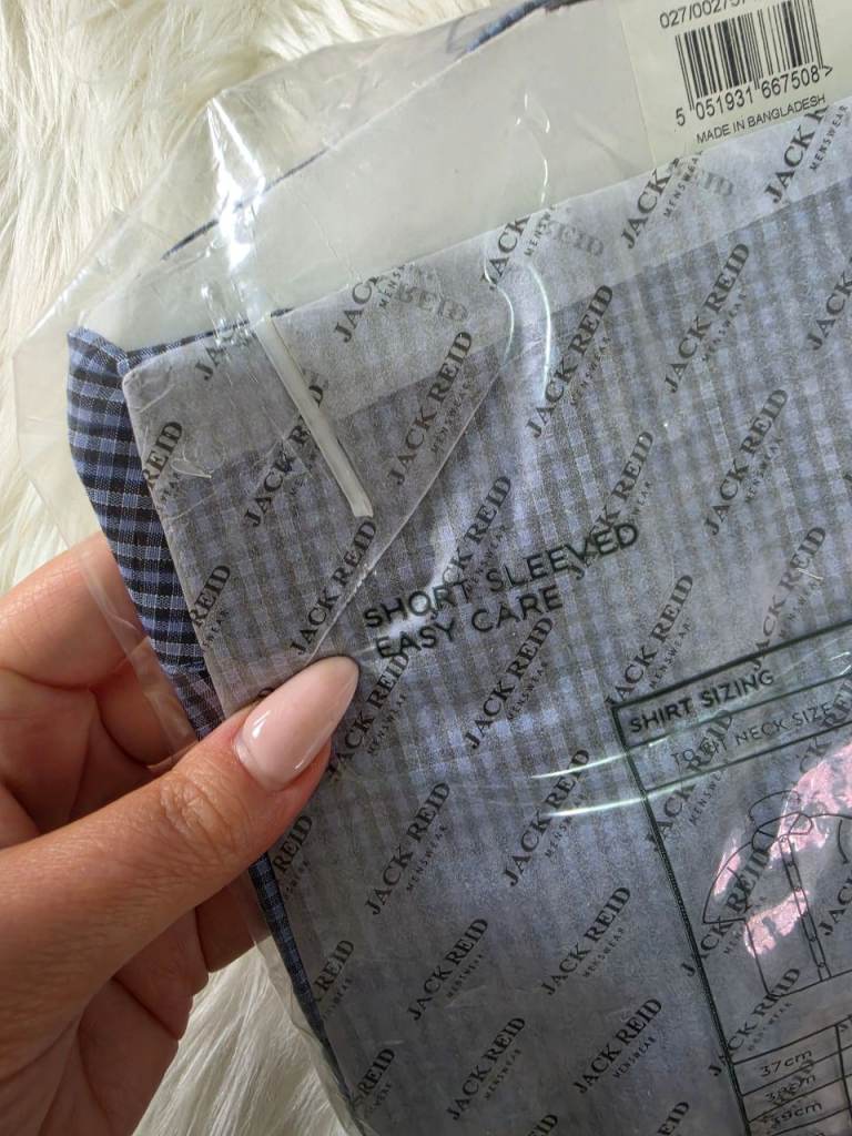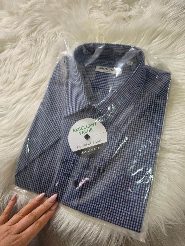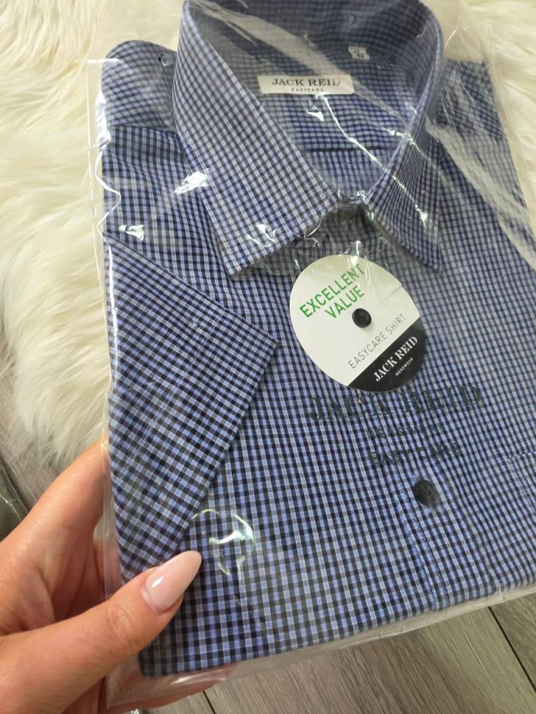 Jack Reid Blue Check Short Sleeve EasyCare Size L - XL