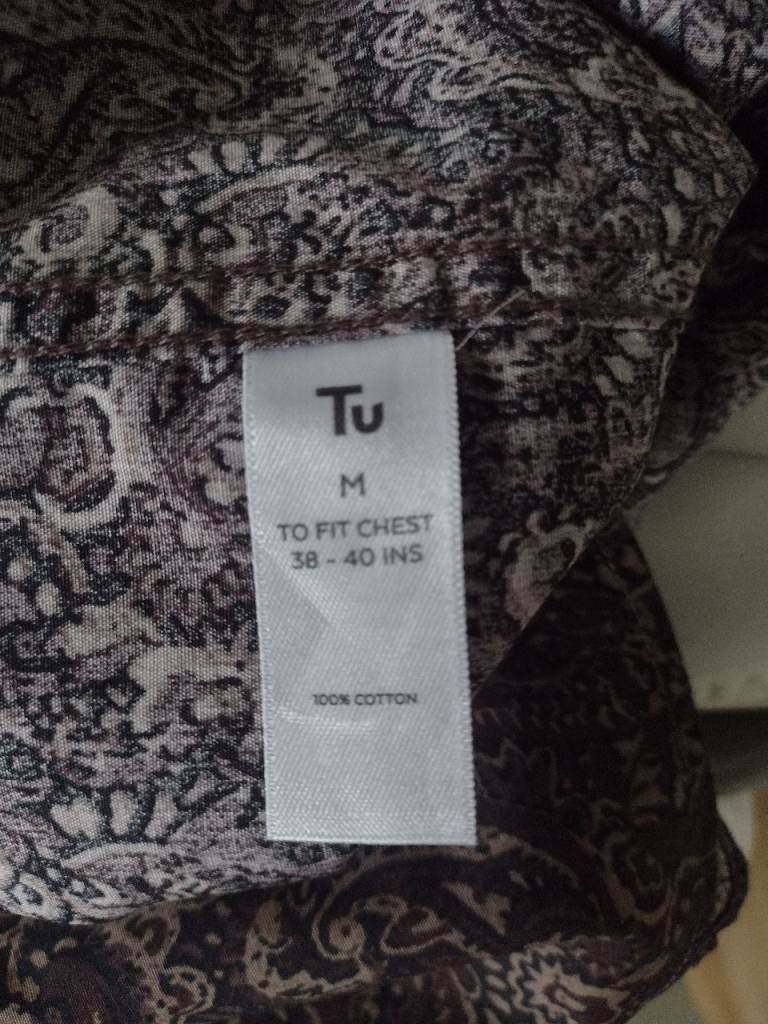 This Men's Brown Paisley 100% Cotton Shirt in size M is a stylish and versatile addition to any man's wardrobe. Made from comfortable cotton material, it features a classic collared neckline, long sleeves, and a button-up closure. The paisley pattern adds a touch of sophistication, making it suitable for casual occasions during the summer and spring seasons. Simply machine washable for easy care, this shirt from Tu offers a regular fit, perfect for everyday wear or occasion. #GotStuffGetCash
