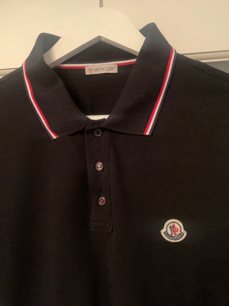 Men’s Moncler polo shirt size large black in colour excellent condition genuine moncler