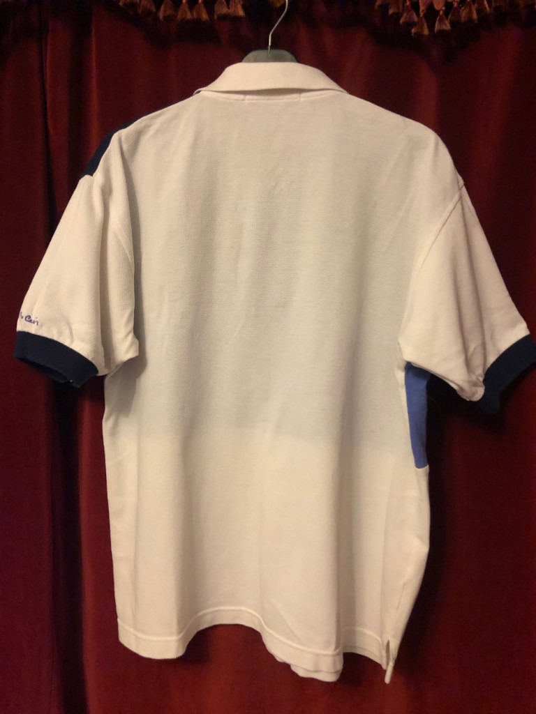Men’s short sleeve polo shirt by Pierre Cardin. Label states medium size. Approx. chest size is 108 cm. Approx. length is 64 cm. 100 per cent cotton. Very good clean condition.
