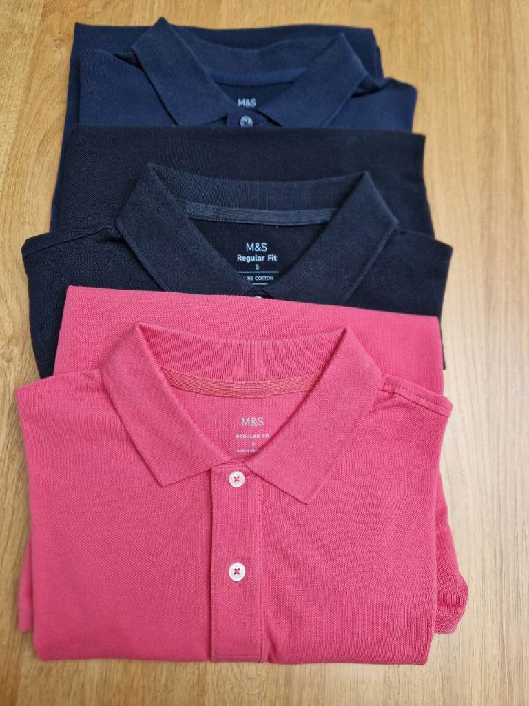 Brand New ... 3 M&S Cotton Polo Shirts ... Blue, Pink & Black