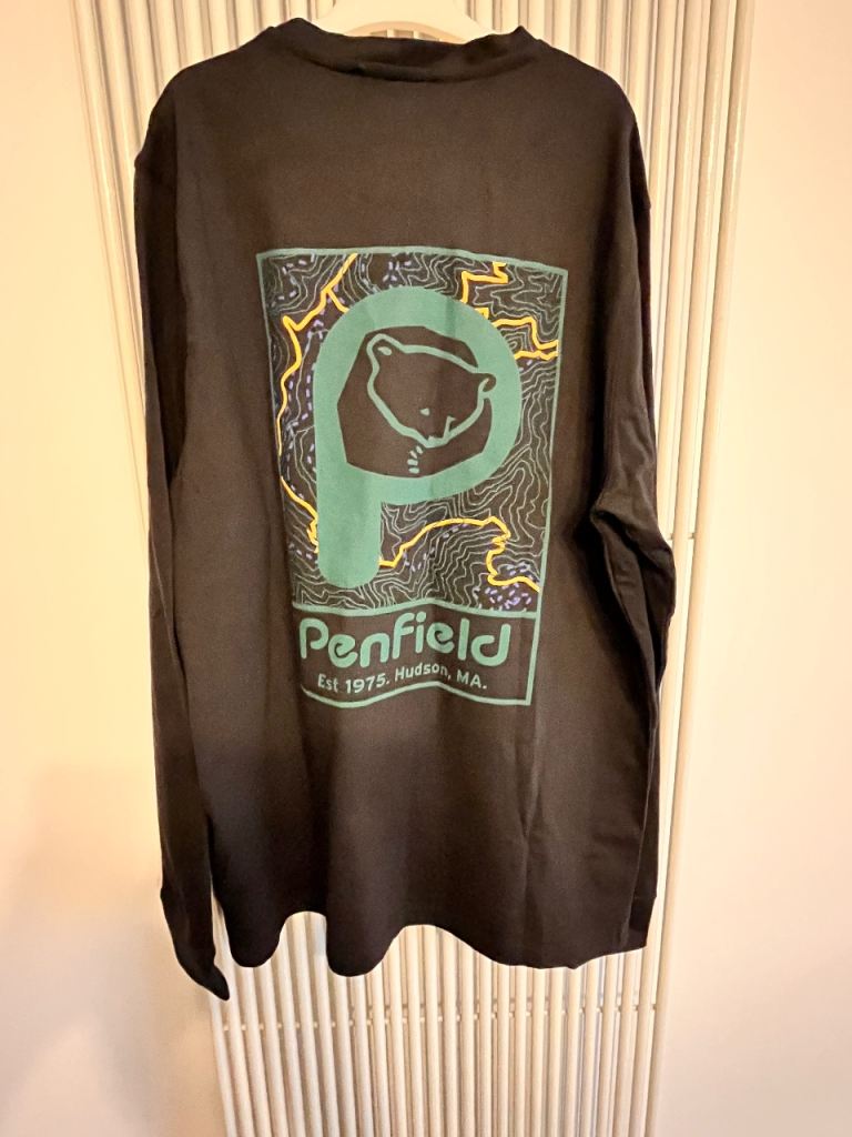 Penfield men’s long sleeve top - black with teal bear logo to front and back.