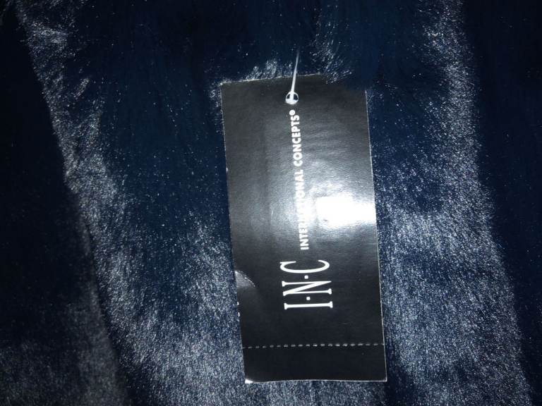 The small blue appliquéd signature is situated on the front.