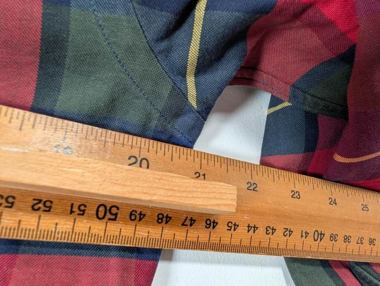 Sizing The size label is Medium (Slim Fit). Measurements are shown clearly in the photos to help ensure a good fit.