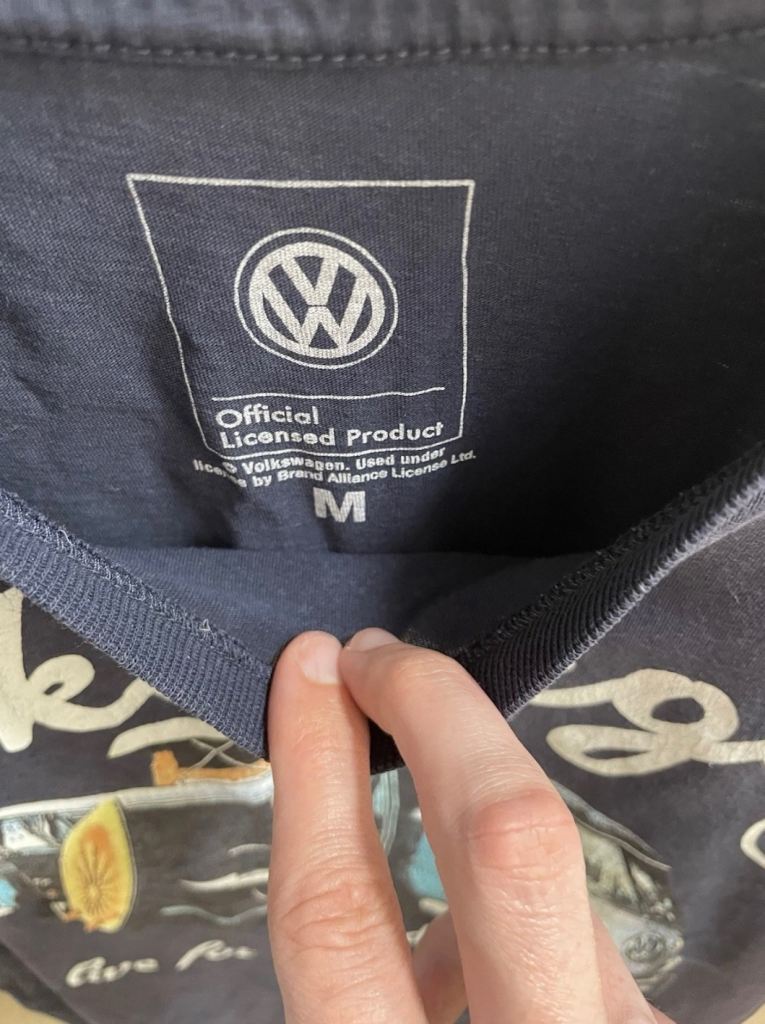 This Volkswagen Camper Van Men's T-Shirt in size Medium features a round neck, short sleeves, and is made of cotton fabric. The t-shirt showcases the iconic Volkswagen logo as an accent, making it a perfect choice for fans of the brand. The graphic print design on the blue t-shirt reflects a hippie character and is ideal for all seasons, specifically autumn, summer, and spring. Machine washable for easy care, this regular fit t-shirt is a must-have for any man who loves the Volkswagen Camper Van theme.