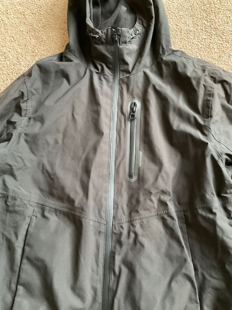 Black lightweight Next jacket with fleece lining. Suitable for 12-13 year old. Can be used casual or for school. Slight wear at flap at top of jacket see picture. Poppers to close side pockets. Velcro pocket inside and chest zipper pocket. Perfect for Spring.