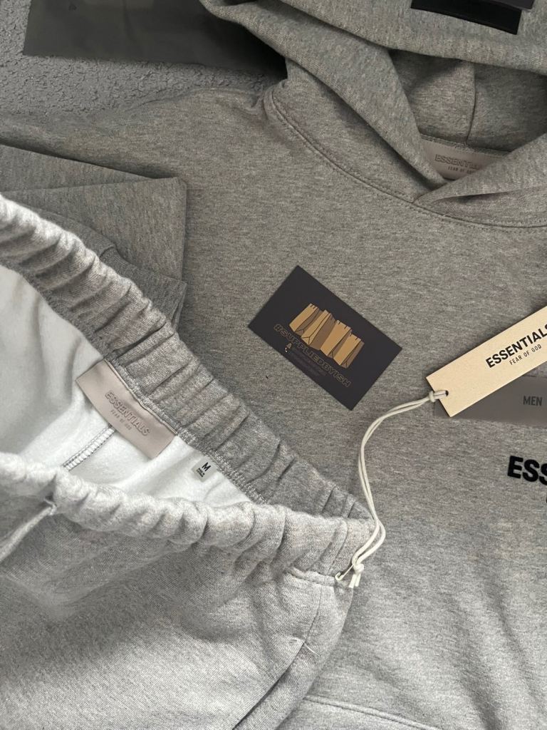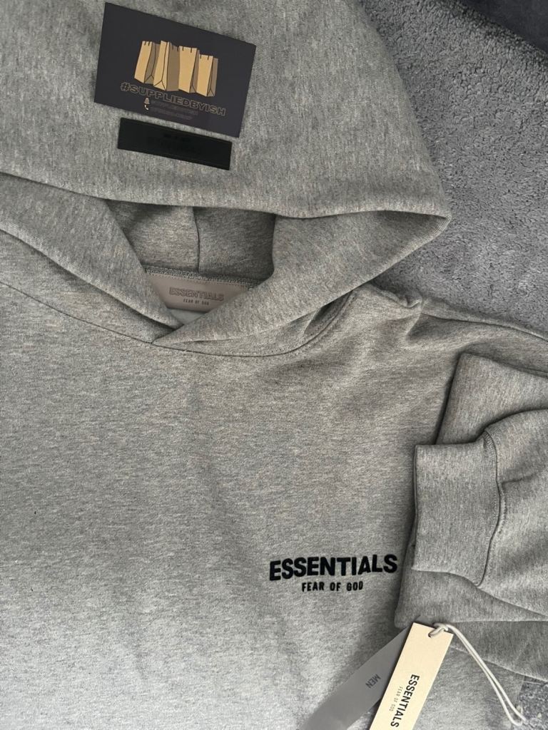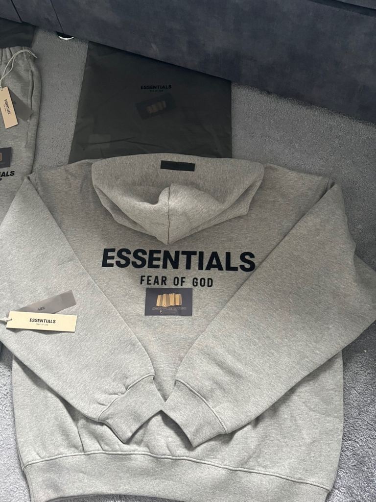 Premium heavyweight cotton blend with signature ESSENTIALS chest logo and Fear of God branding.