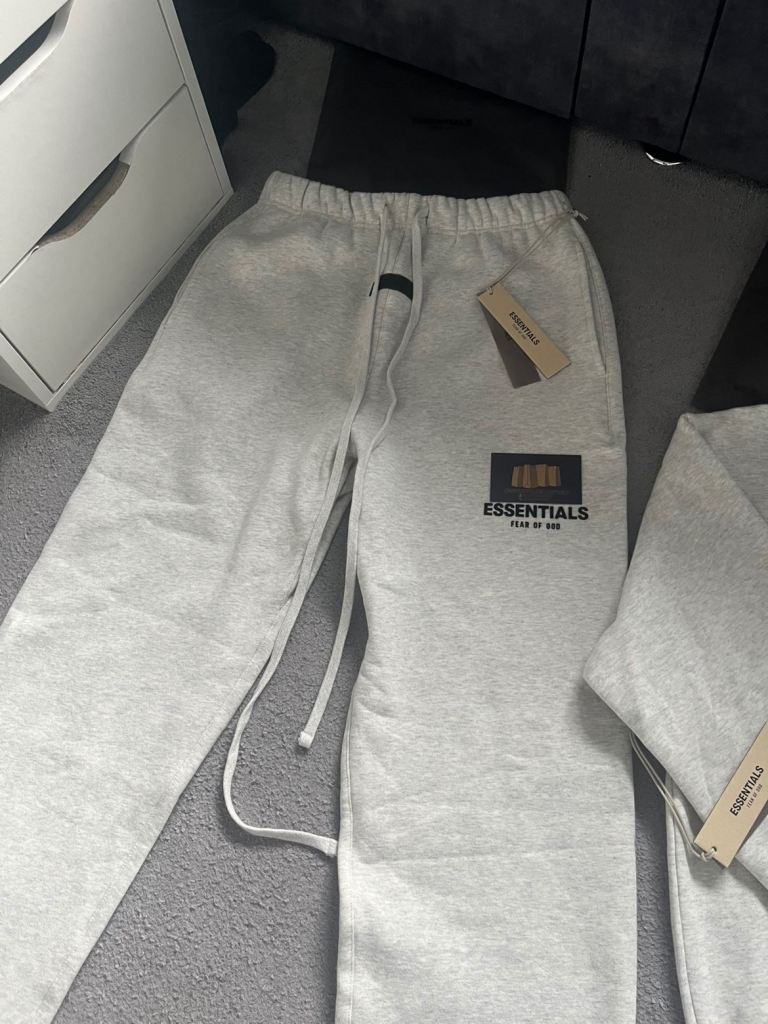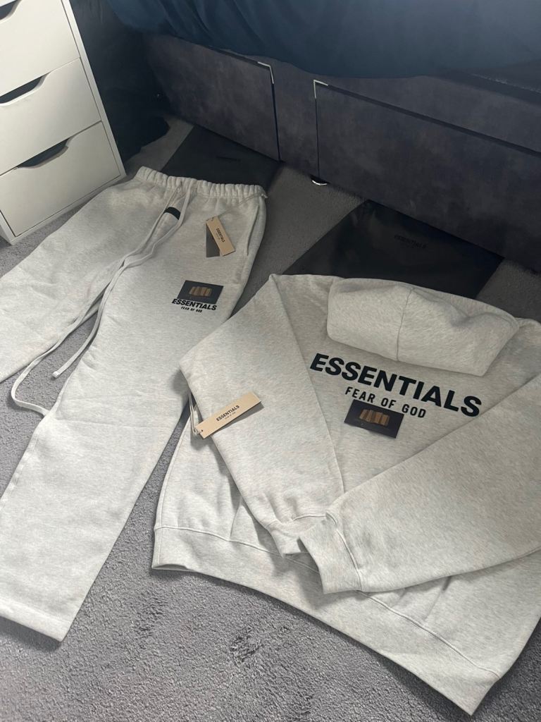 Brand new Fear of God Essentials SS25 tracksuit in Light Oatmeal / White.