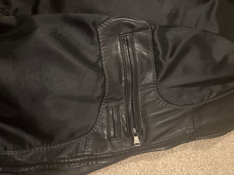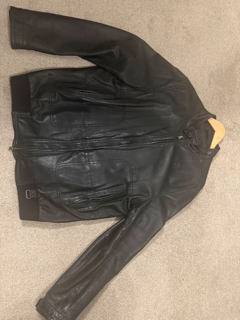 Selling as no longer use it, mens Hugo boss black leather jacket size 48, good condition