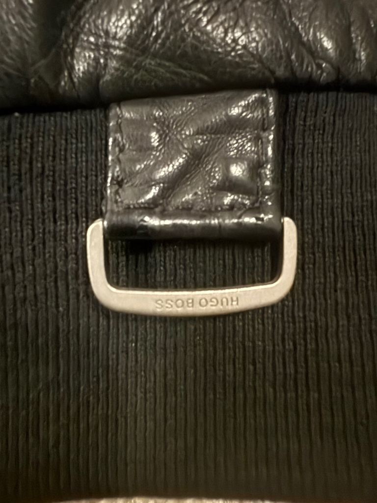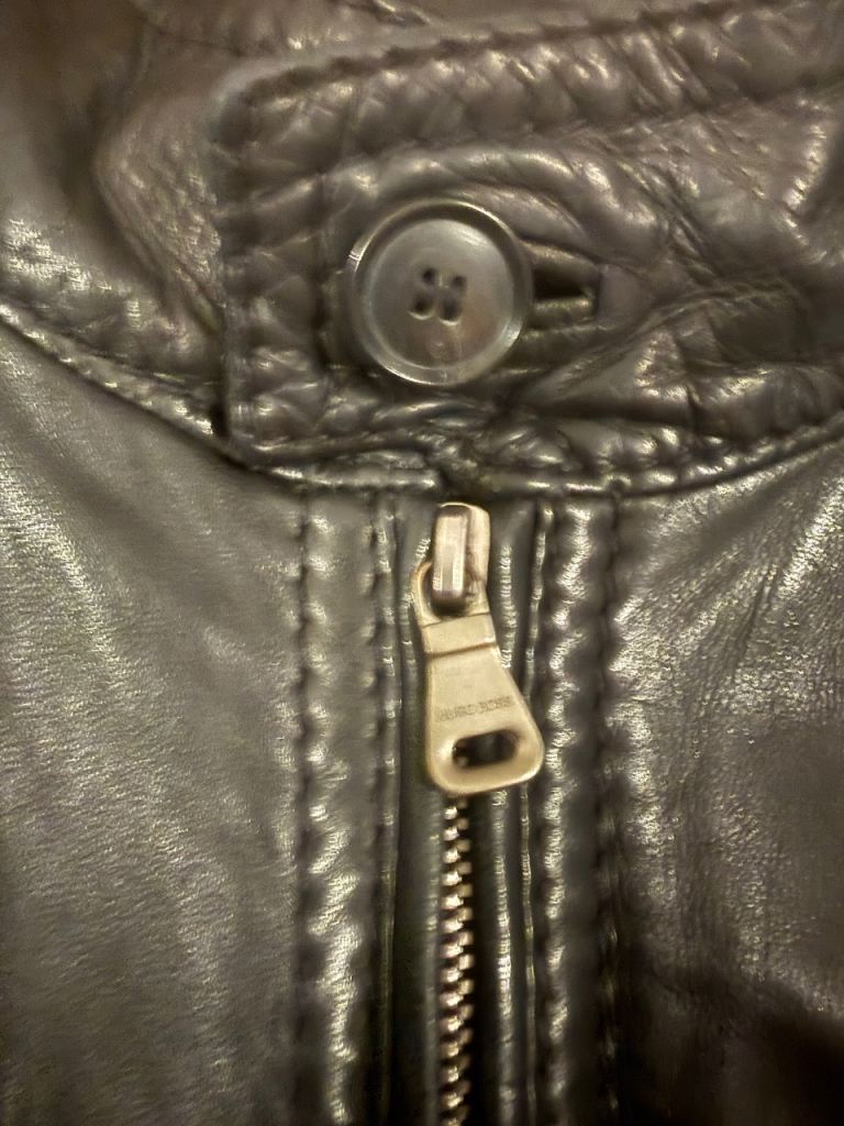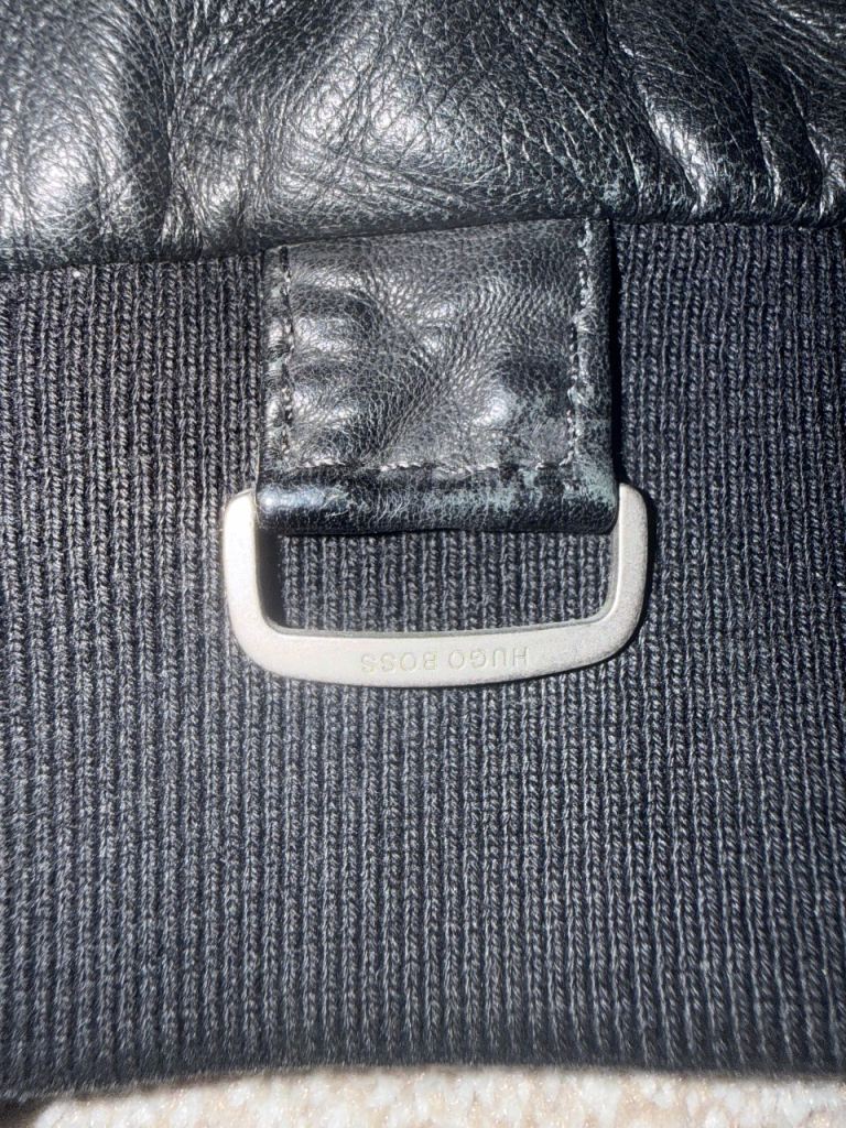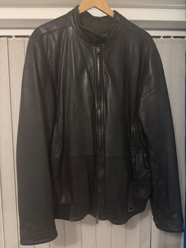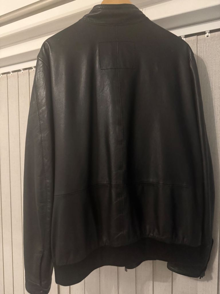 Hugo Boss mens black leather jacket size 48