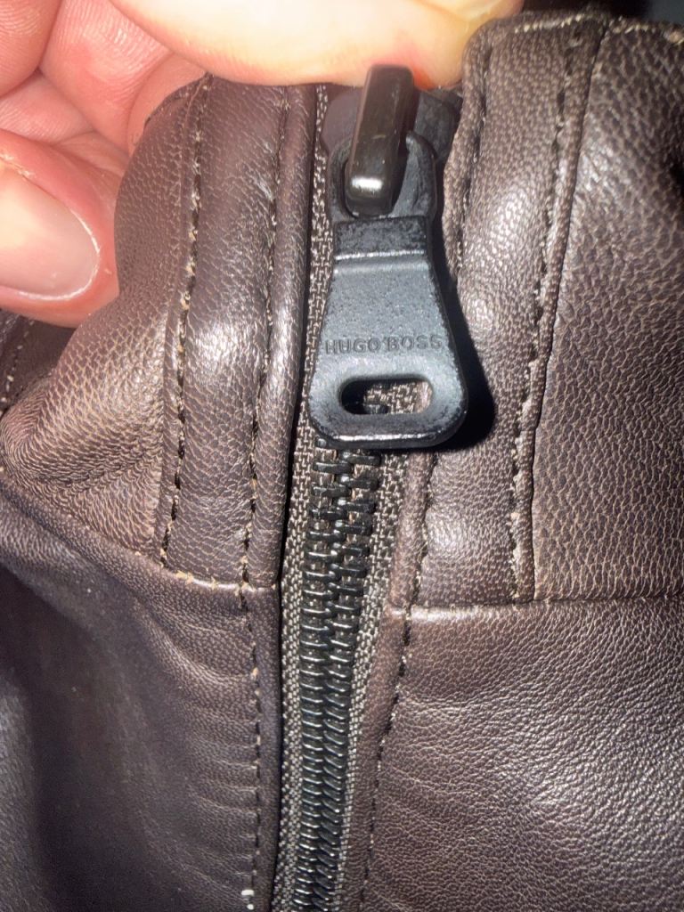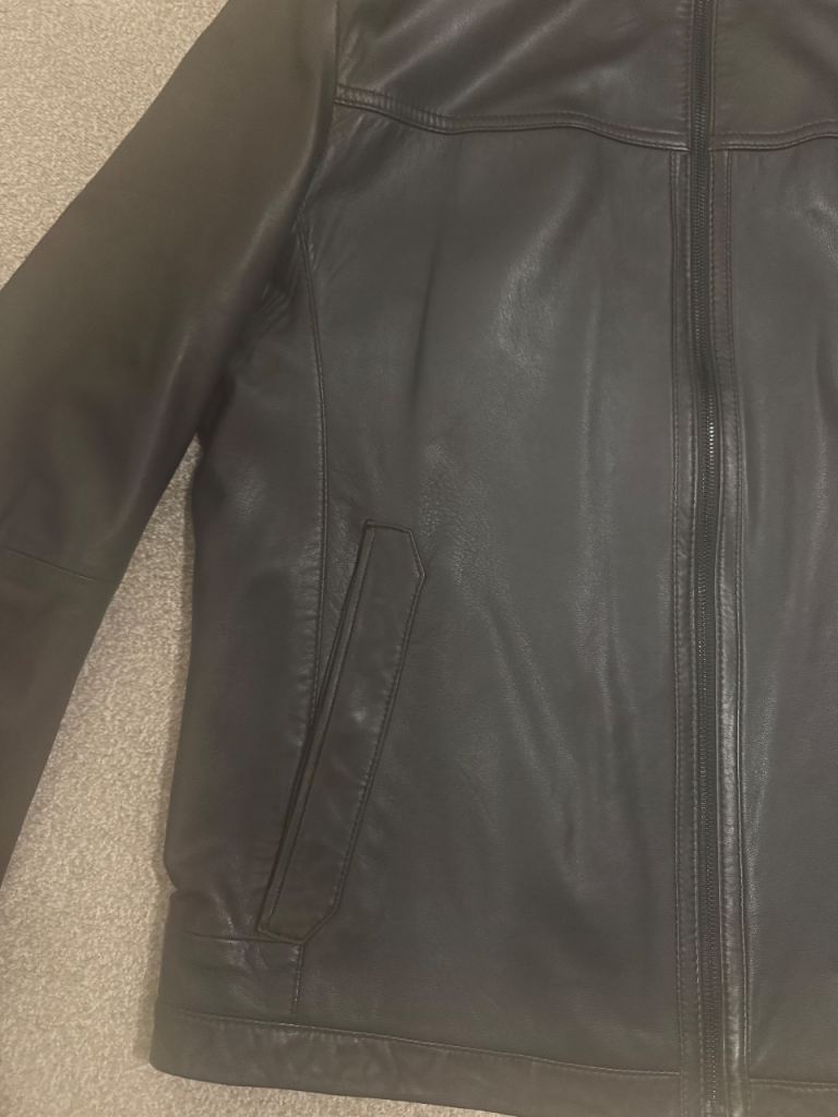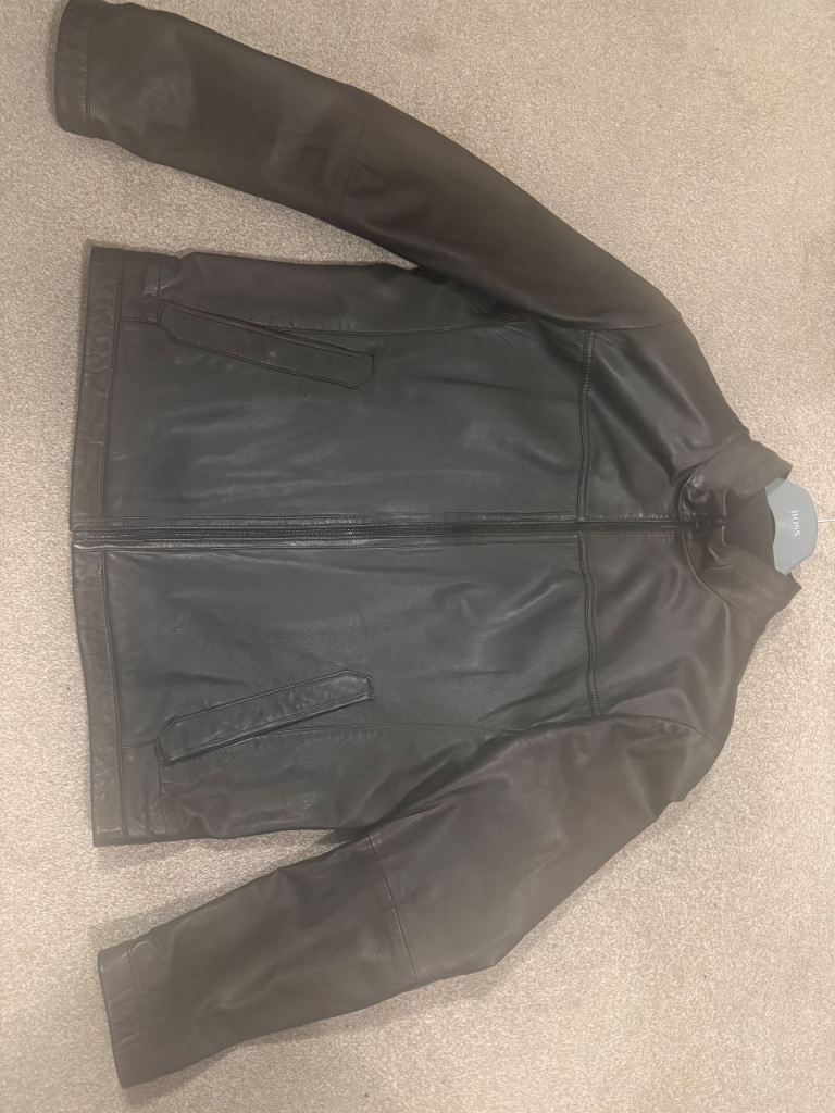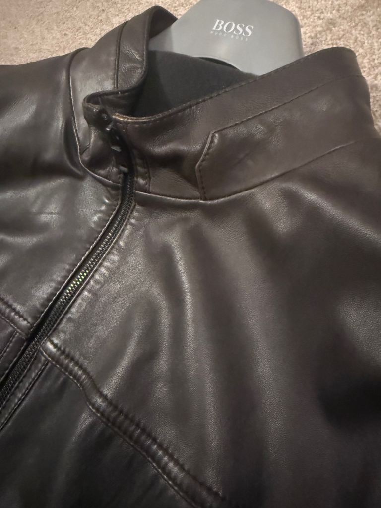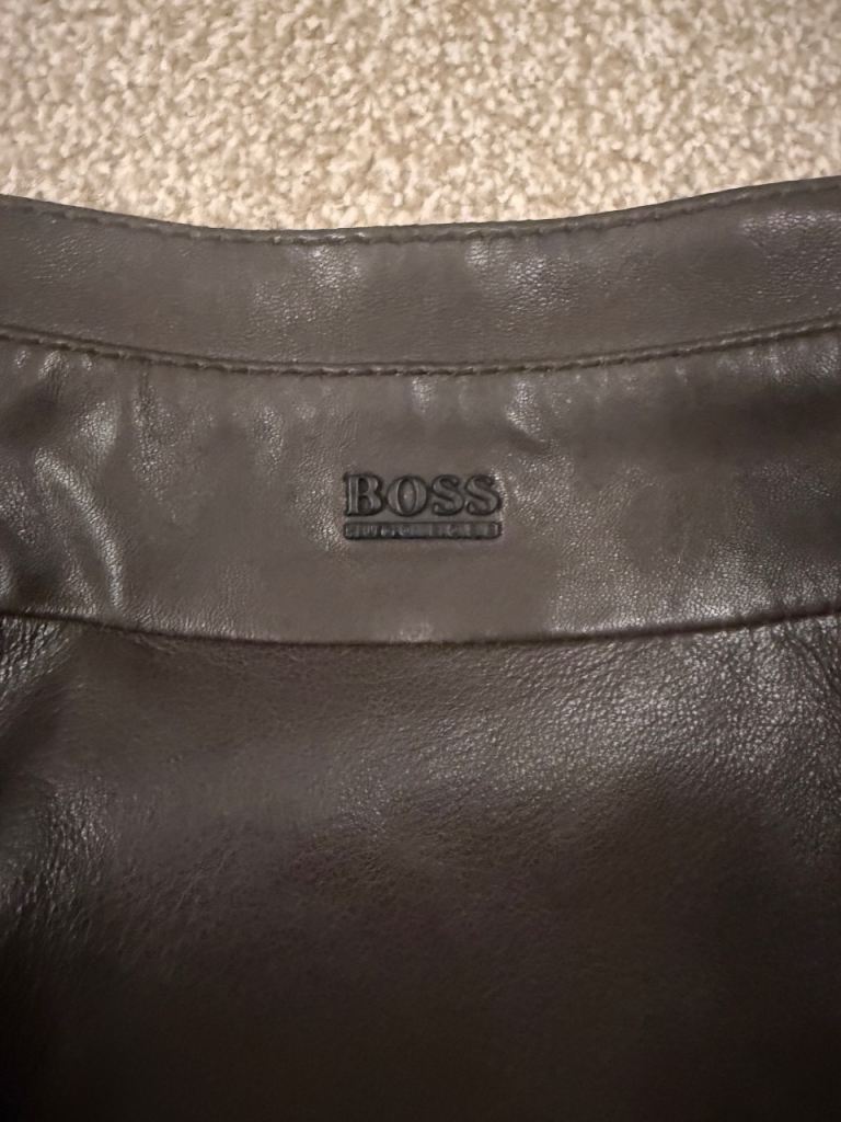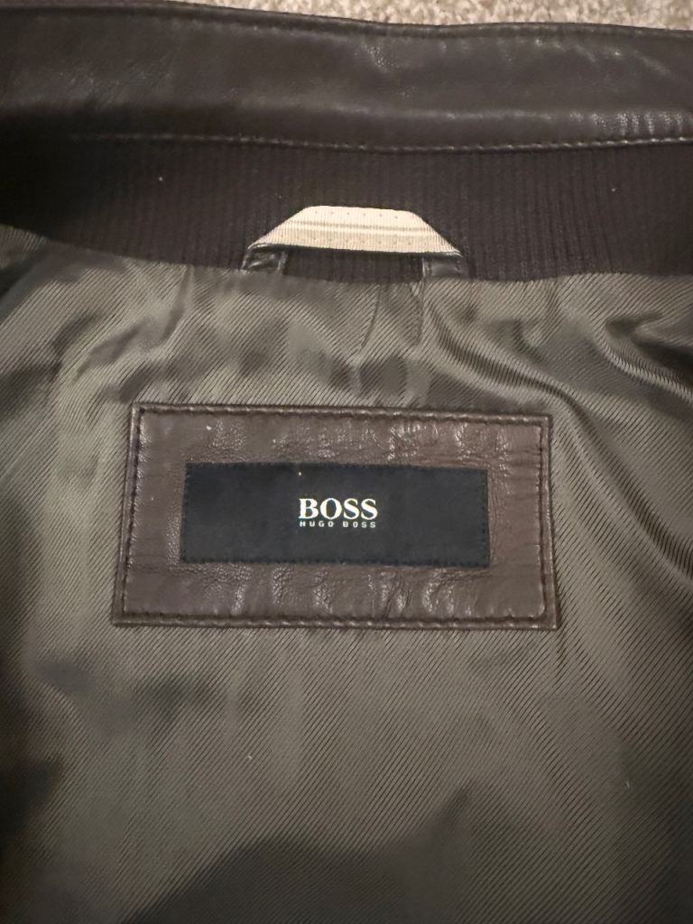 Hugo Boss mens brown leather jacket size46