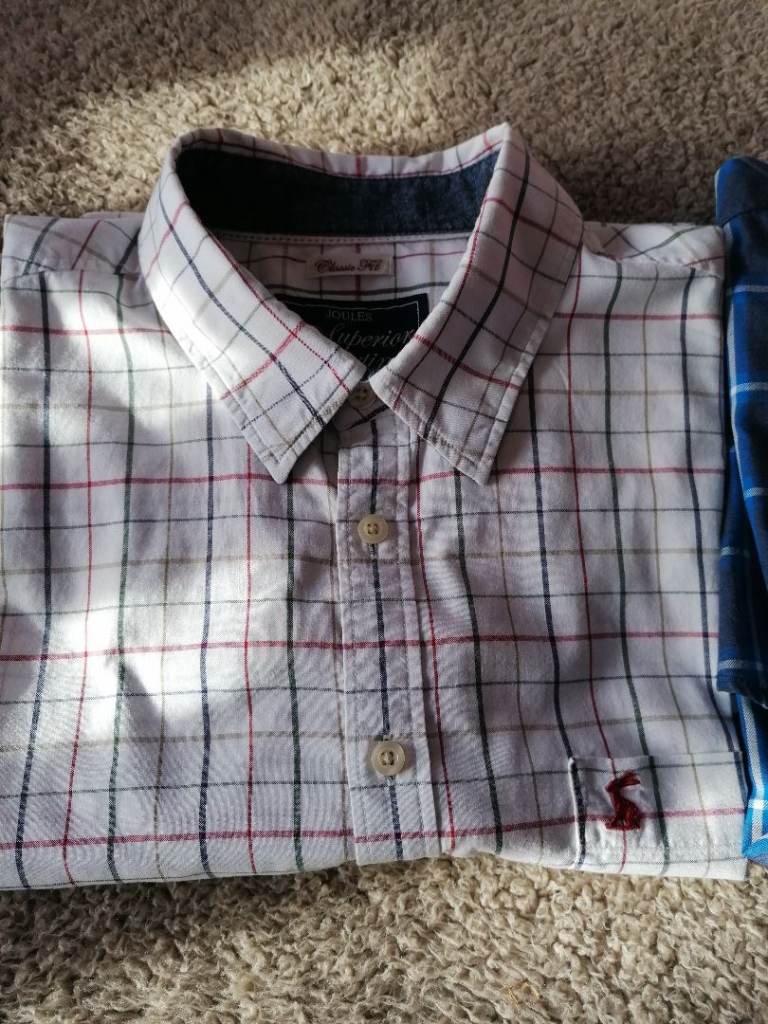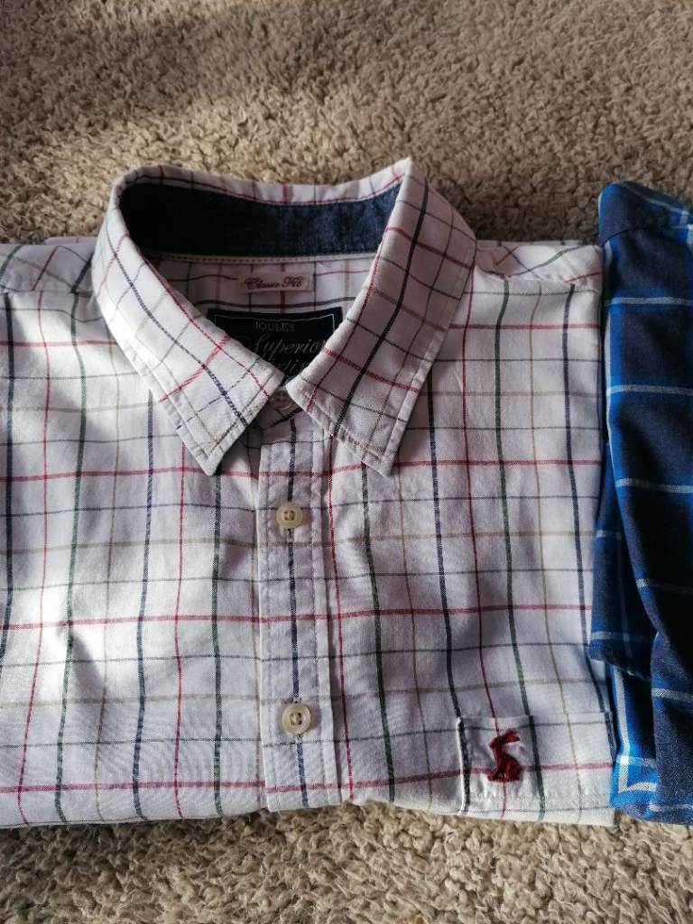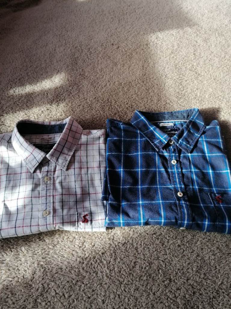 Joules shirts used twice, 1 x white checked shirt in good condition has been washed and 1 x blue checked does have a small mark on but other wise in good condition come from a smoke free home, selling on behalf a relative collection only from southrepps near Cromer thanks. 1 is size large and 1 x xL Quick sale needed 2 x £15