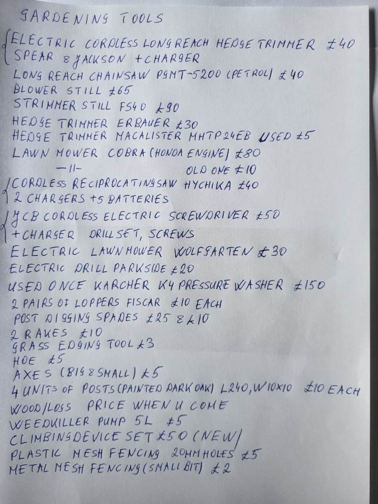Also selling my Gardening business with customers and tools