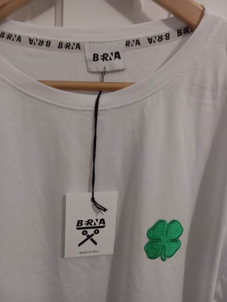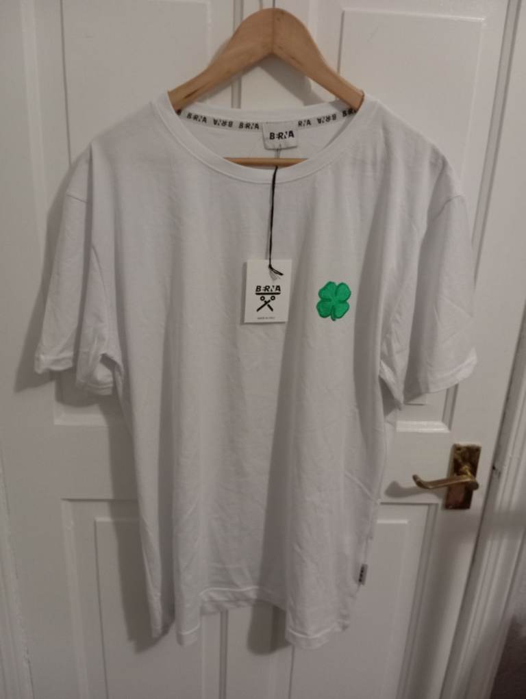 XL White T-Shirt with green clover logo, brand new, unworn, BRIA
