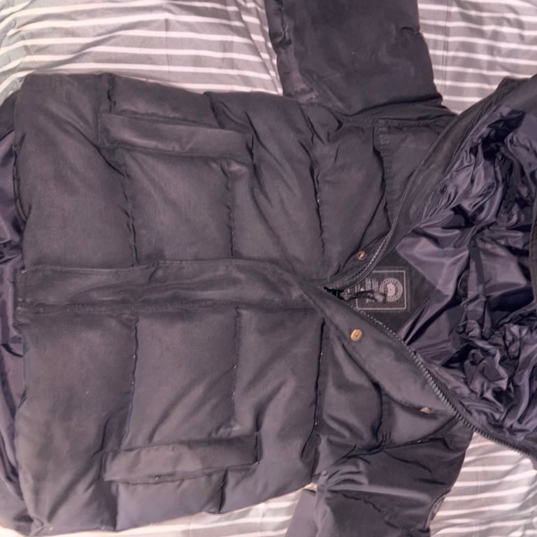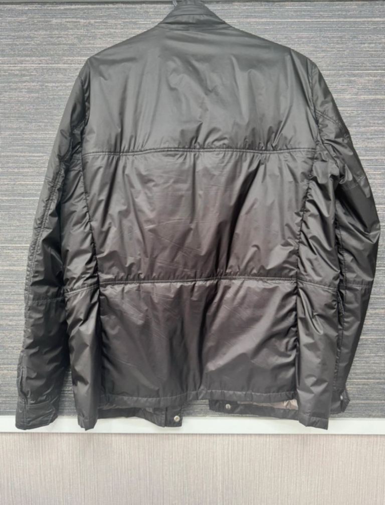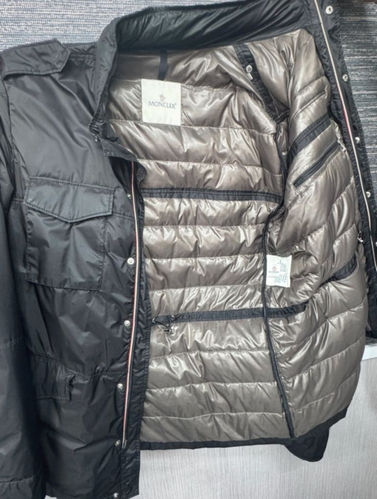 Authentic Moncler men’s quilted field jacket in classic black. Designed with a sleek, military-inspired silhouette, this jacket offers lightweight warmth with a refined, versatile look. Crafted from high-quality water-resistant nylon and insulated with premium goose down for excellent warmth without added bulk. In very good condition.