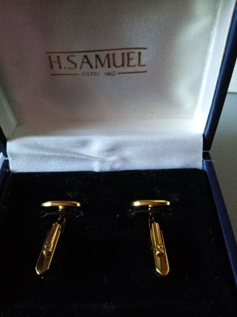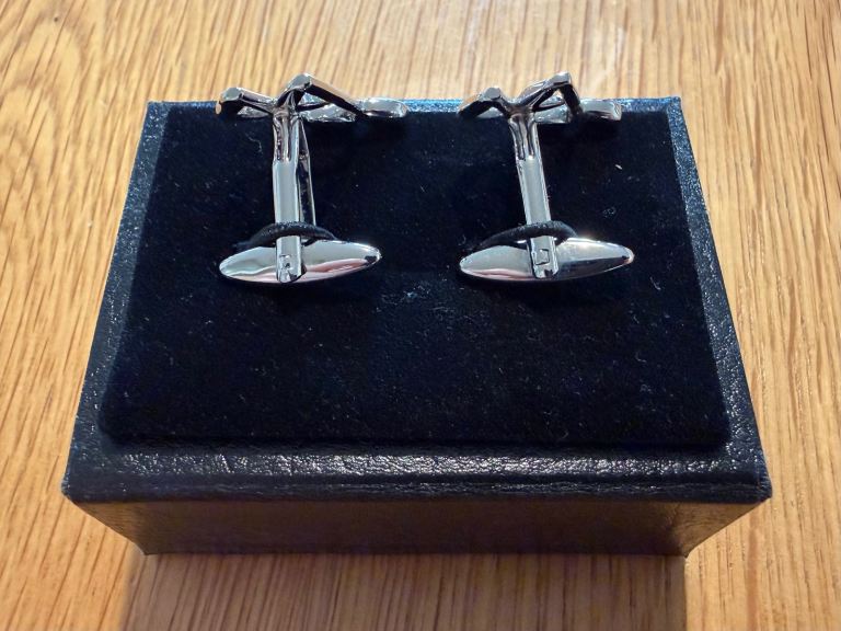 Has a swivel bar to make putting them on easier and have never been worn so in excellent condition.