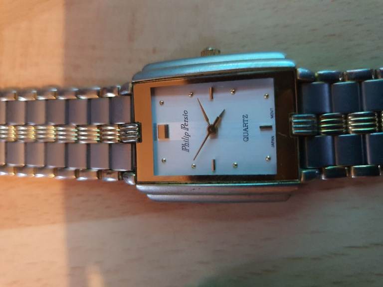 Vintage Philip Persio Two-Tone Watch – Gold & Silver Bracelet, Quartz Dress Watch, needs new battery.