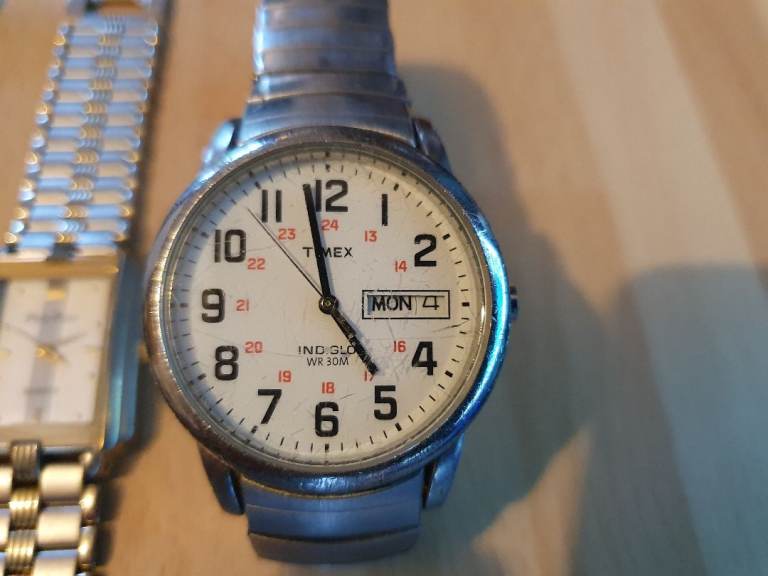 Vintage Timex 12/24Hr Day/Date Indiglo Gents Expandable Bracelet Watch-35mm-Working