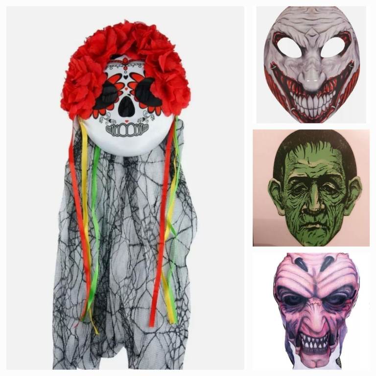 4 x Halloween Face Masks. Frankenstein, Monster, Scary Clown, Day Of The Dead NEW