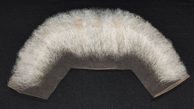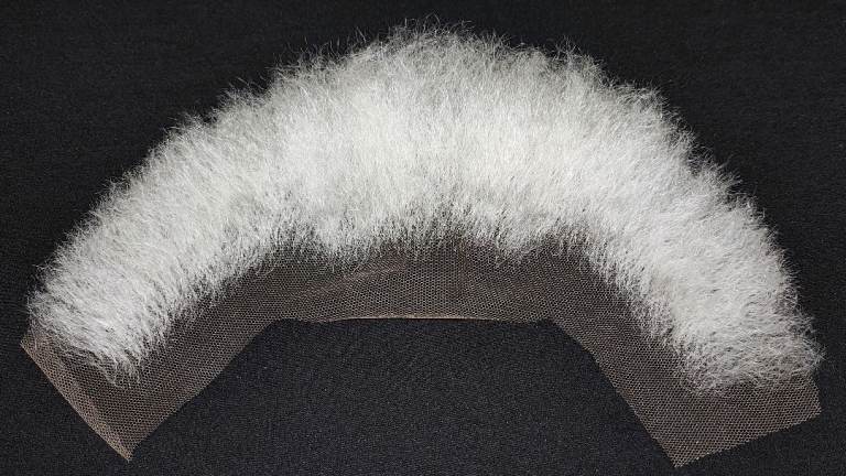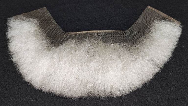 "Miracle on 34th St" style short yak hair Santa beard, hand tied on French lace.