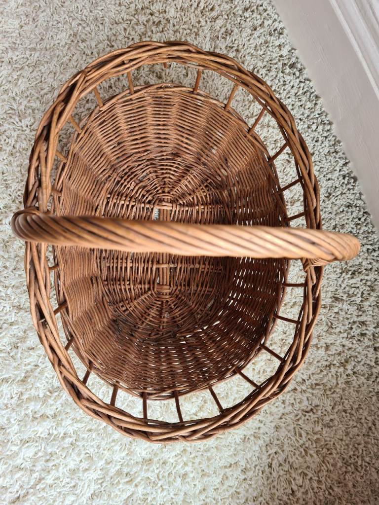 Nice medium chocolatey brown oval wicker/woven basket with handle.