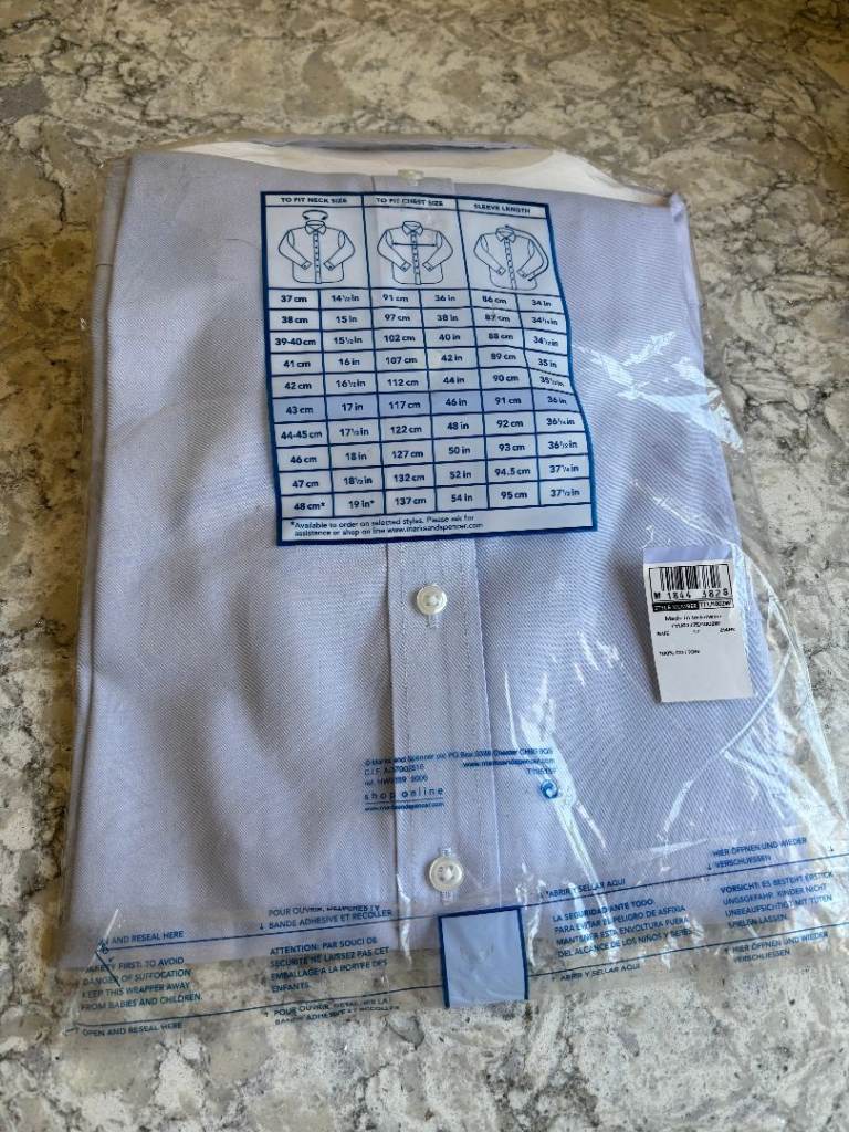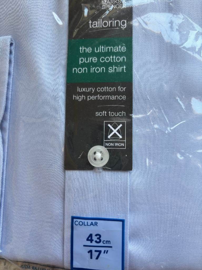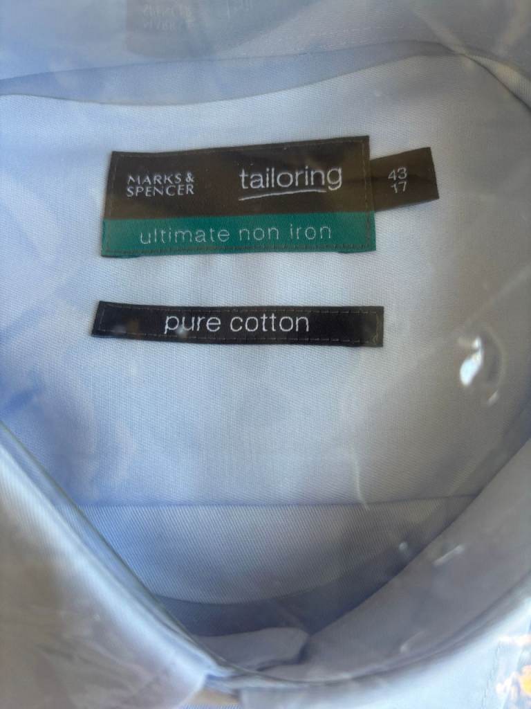M&S Tailoring The Ultimate 100% Pure Cotton Non-Iron Plain Blue Shirt 17"/43cm.
