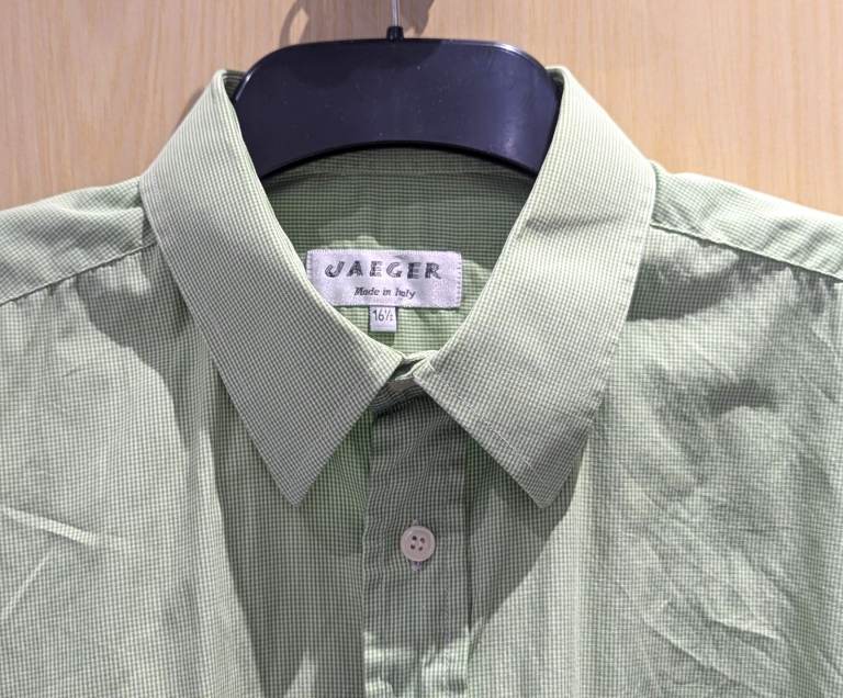 VINTAGE JAEGER MENS DRESS SHIRT GREEN WHITE CHECK COTTON 16.5 inch 42cm COLLAR
