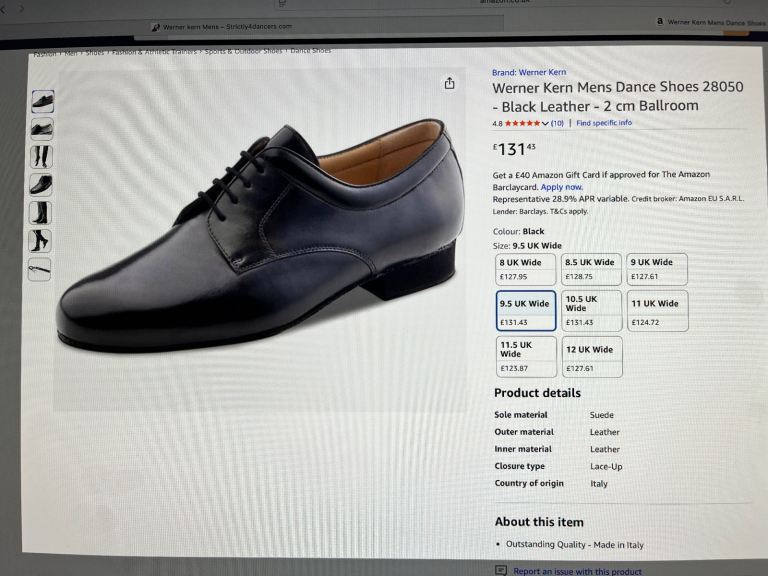 Werner Kern dance shoes, beautifully made. Wide fitting. 9.5.
