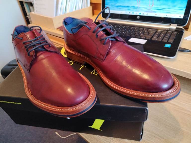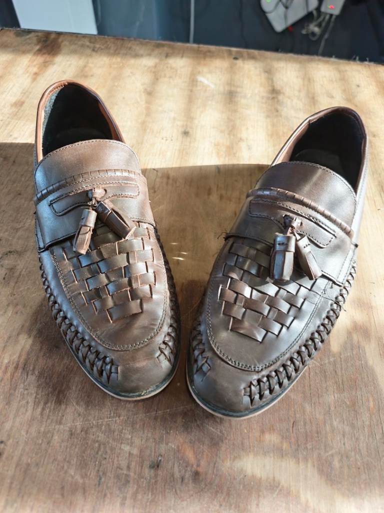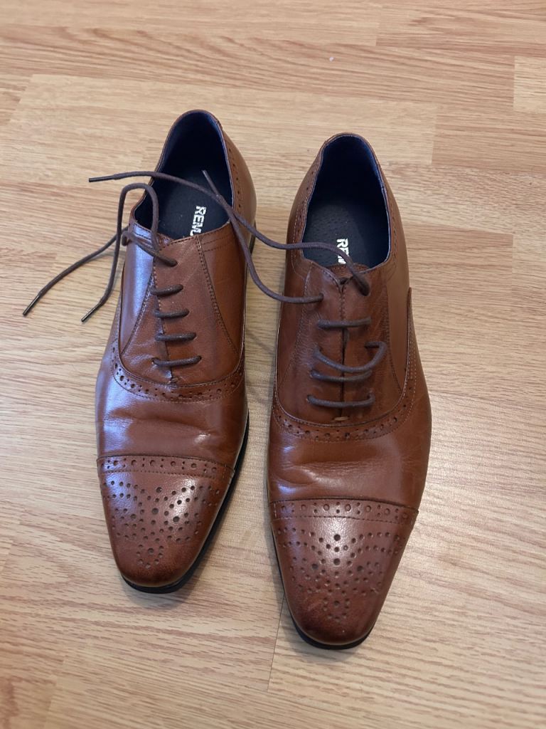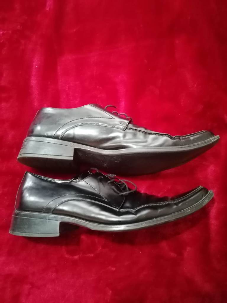 Men's leather shoes. The colour is black. The size is UK 10. The brand is Luciano Bellini. Used.