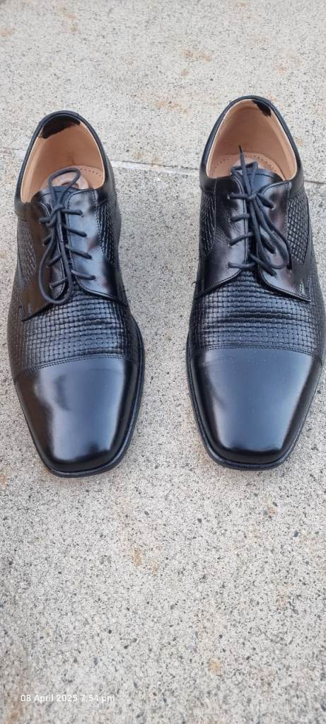 Colour: Black, with square lattice embosement on front. Worn twice.